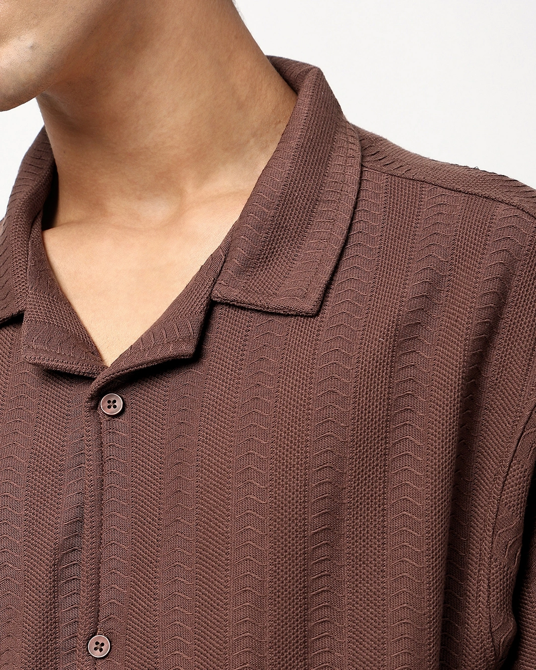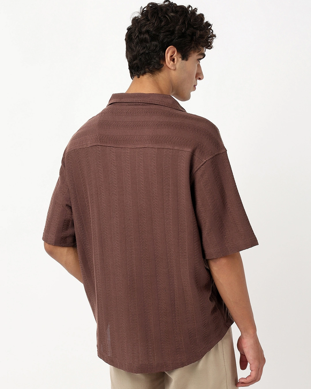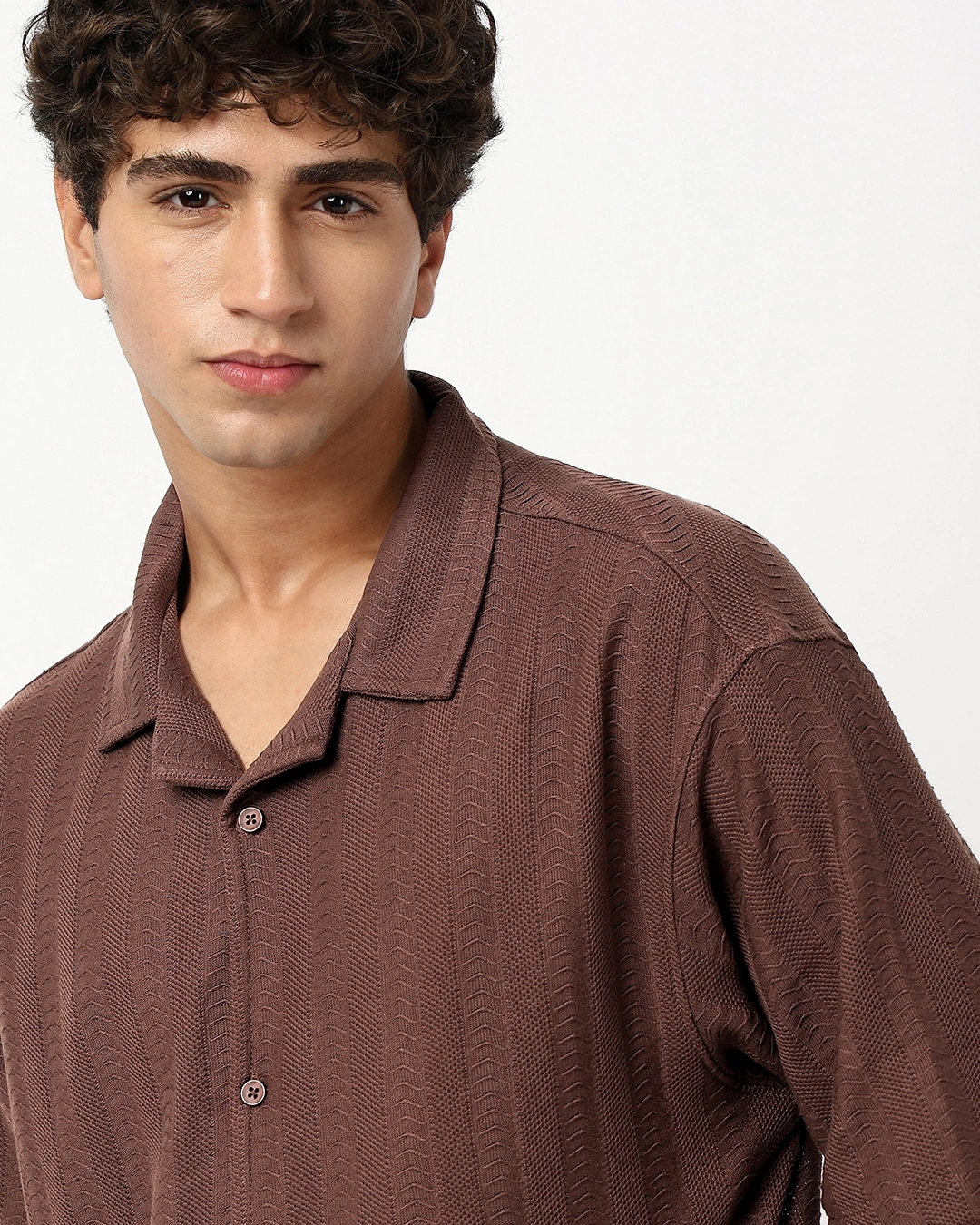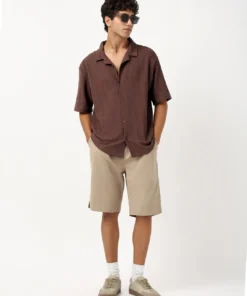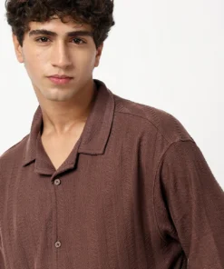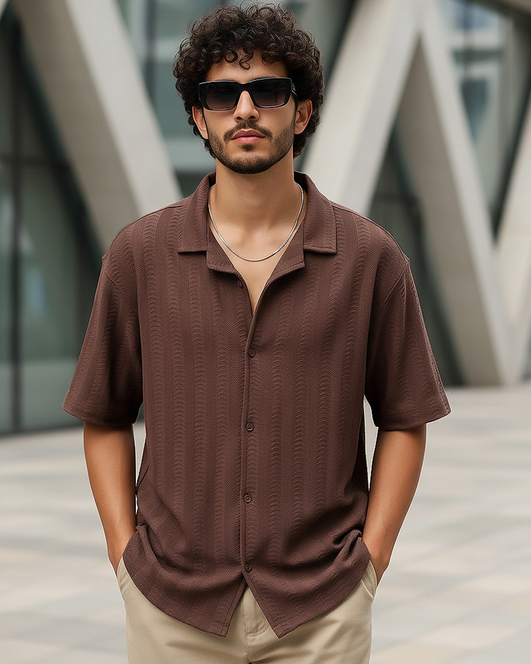 Beyond its aesthetic qualities, the Almond Brown Textured Oversized Shirt stands out for its versatility. It can be styled in countless ways—layered over a plain t-shirt with jeans for a relaxed street-style look, tucked into tailored trousers for a balanced semi-formal outfit, or paired with shorts for an effortlessly stylish summer ensemble. The neutral yet rich color allows it to transition seamlessly across seasons and settings, making it a dependable staple for the modern man’s wardrobe.
