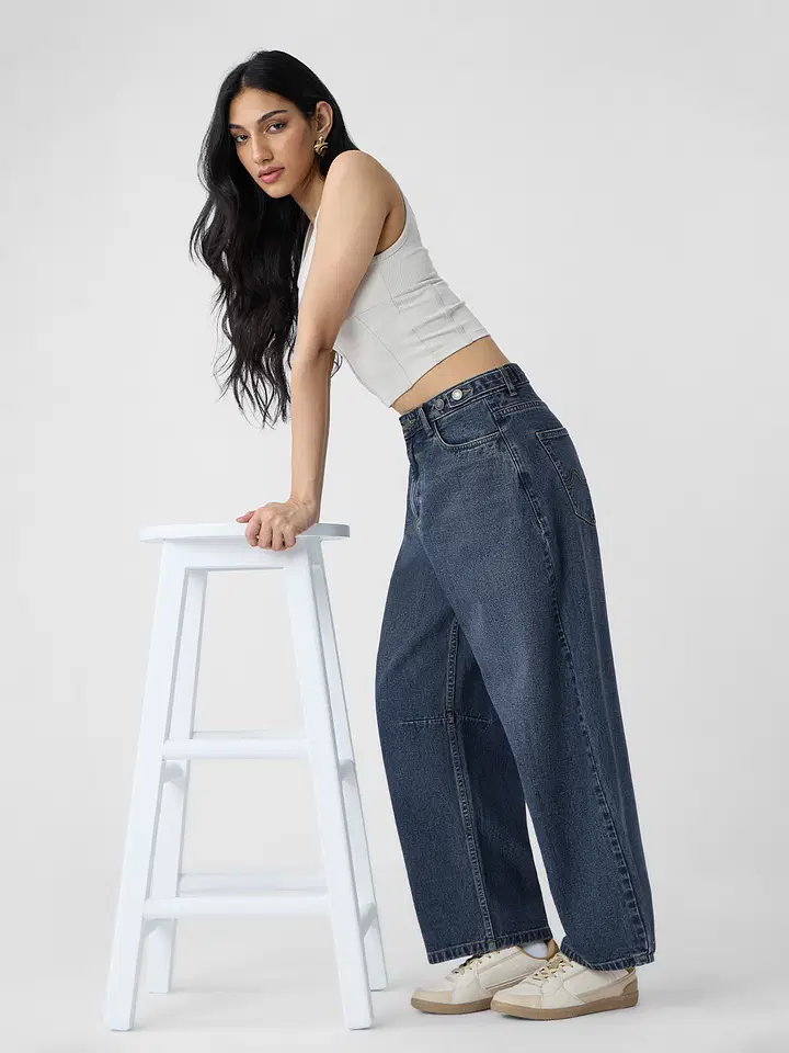 • Barrel-Fit Design – Unique curved-leg silhouette for a modern look.
