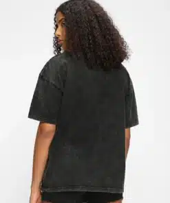 What truly sets this t-shirt apart is the acid wash finish that gives it a unique, vintage-inspired look. The washed black color is intentionally distressed to create an edgy, worn-in effect that adds character to the t-shirt. The faded tones give it an instantly cool, lived-in feel, making it a standout piece in any casual wardrobe. This acid wash effect also ensures that no two t-shirts are alike, making each one uniquely yours.