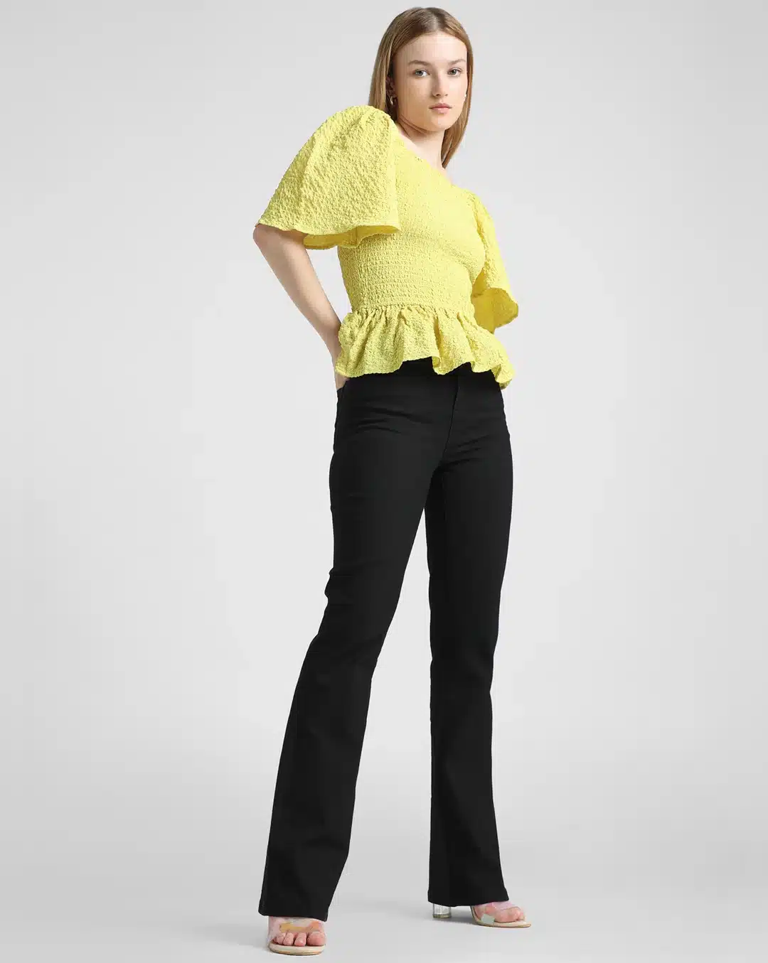 The Black High-Rise Flared Jeans redefine classic denim with their flattering fit and timeless appeal. Perfect for women who love bold yet sophisticated fashion, these jeans bring confidence, comfort, and effortless elegance to any outfit. Whether you’re channeling a 70s-inspired look or simply want a chic, contemporary staple, these flared jeans are a must-have in your collection.