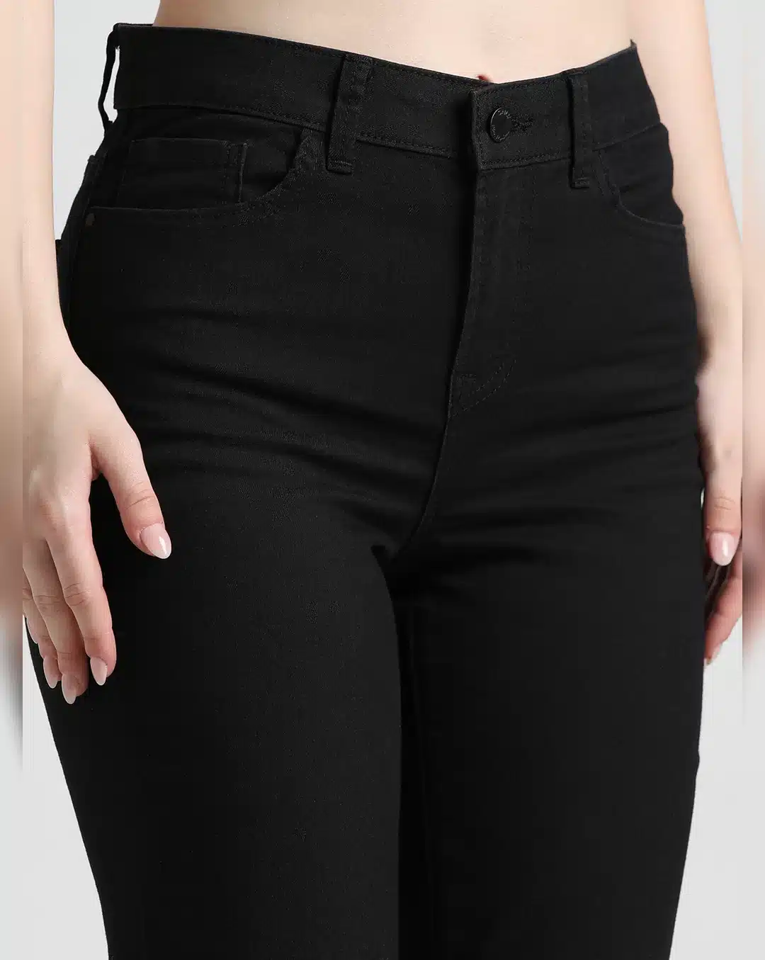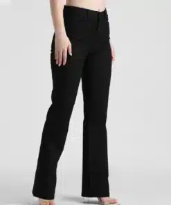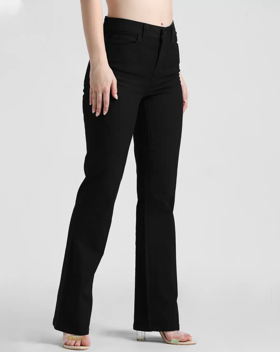 Black High-Rise Flared Jeans, a timeless wardrobe essential that combines vintage charm with modern sophistication. Designed to flatter and elongate, these jeans feature a high-rise waist that cinches at just the right spot, enhancing your natural curves while offering supreme comfort. The flared leg silhouette adds a dramatic yet refined touch, giving a nod to retro-inspired fashion while remaining effortlessly chic for today’s style-conscious woman. Whether you’re dressing up for a night out or creating an effortlessly cool daytime look, these jeans are the perfect go-to piece.