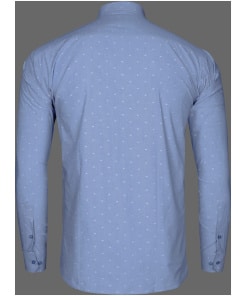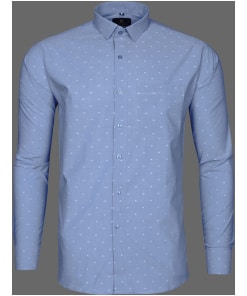 Men’s Blue Dobby Cotton Shirt with Dot Print – a refined and versatile choice for the contemporary man who values sophistication in every detail. This shirt seamlessly blends classic charm with modern design, making it a wardrobe essential for various occasions.