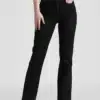Crafted from premium-quality stretch denim, these jeans offer both structure and flexibility, ensuring all-day comfort while maintaining their shape. The classic blue wash enhances their versatility, making them easy to pair with a variety of tops and footwear. The snug fit through the hips and thighs gradually widens into a dramatic flare from the knees down, creating a balanced and flattering silhouette. This elongating effect makes them ideal for pairing with heeled boots or platform shoes, adding height and confidence to your stride.