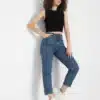 Designed with classic five-pocket styling, sturdy belt loops, and a secure button-zip closure, these jeans offer both style and functionality. The tailored seam detailing along the legs adds a refined touch, enhancing their structured yet relaxed aesthetic. Whether styled with a tucked-in blouse and a blazer for a polished, office-ready ensemble or paired with a cropped sweater and sneakers for a laid-back, casual look, these jeans are versatile enough for any occasion.