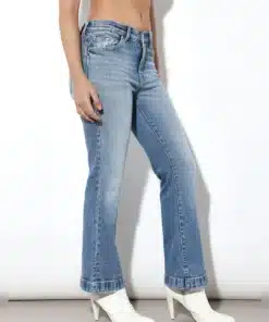 Blue High-Rise Flared Jeans for Women, a perfect blend of vintage inspiration and contemporary elegance. Designed to flatter every body type, these jeans feature a high-rise waist that accentuates your curves while providing a secure and comfortable fit. The flared-leg silhouette creates a beautiful, elongated effect, adding a touch of retro charm that remains a timeless fashion staple. Whether you’re dressing for a casual day out or an evening event, these jeans bring effortless sophistication to any outfit.