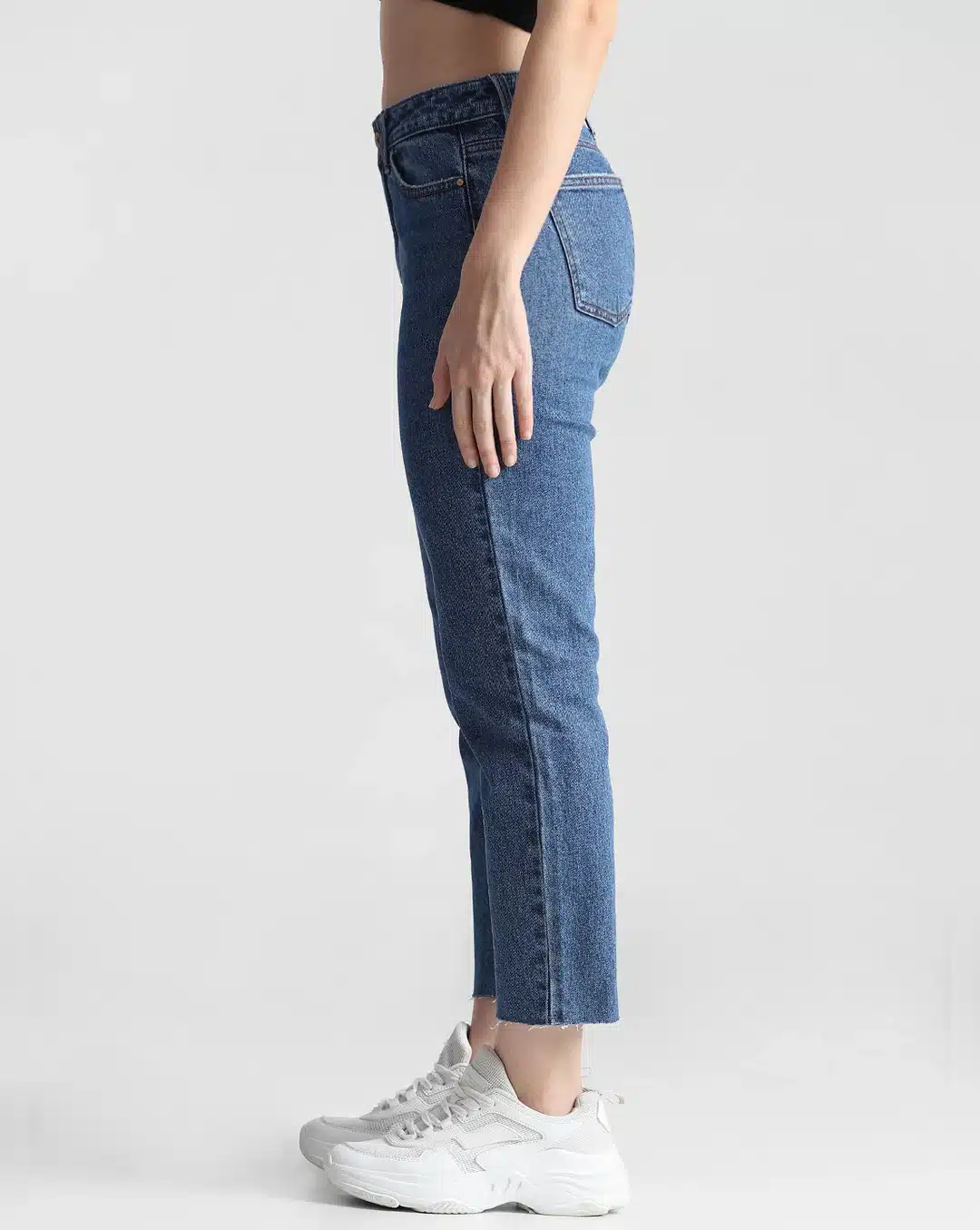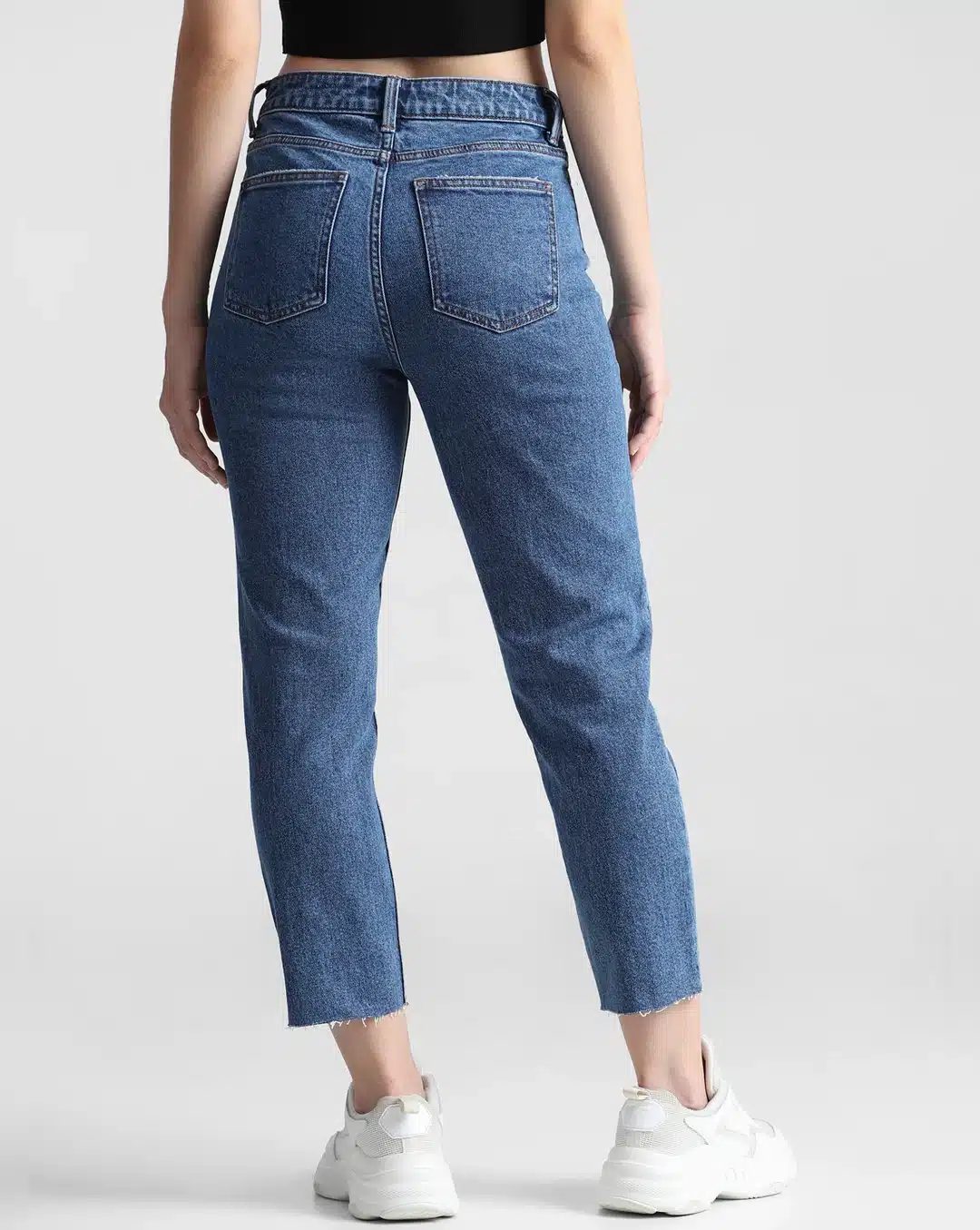 Blue High Rise Mom Fit Jeans for Women. Elevating the classic mom jean silhouette, these jeans are designed to deliver both style and comfort in abundance.
