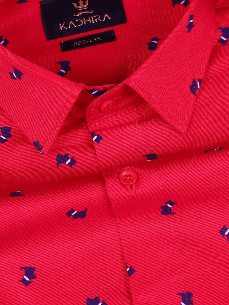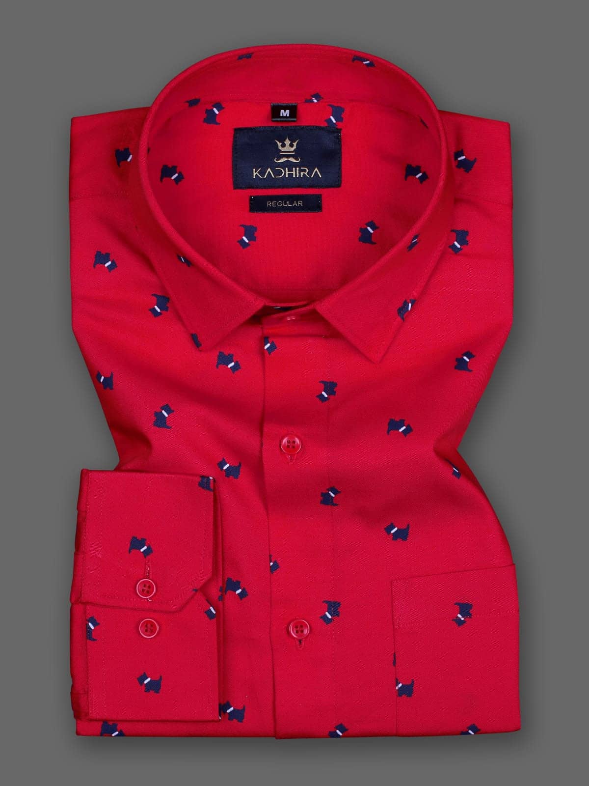 Men’s Bright Red Blue Dog Printed Cotton Shirt – a vibrant and playful addition to your wardrobe that brings a pop of color and character to your style. This shirt is designed for the modern man who embraces a bold and adventurous approach to fashion.