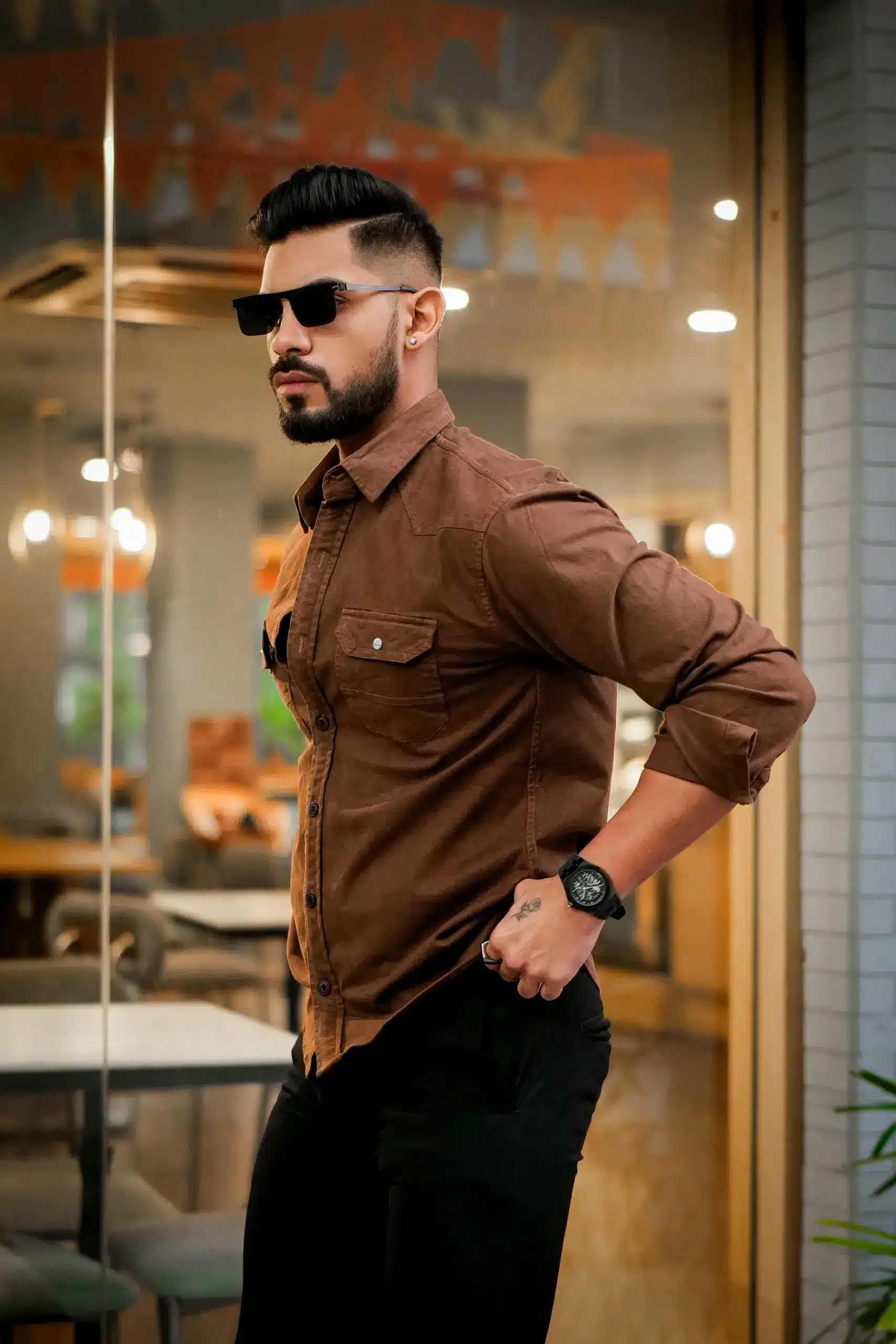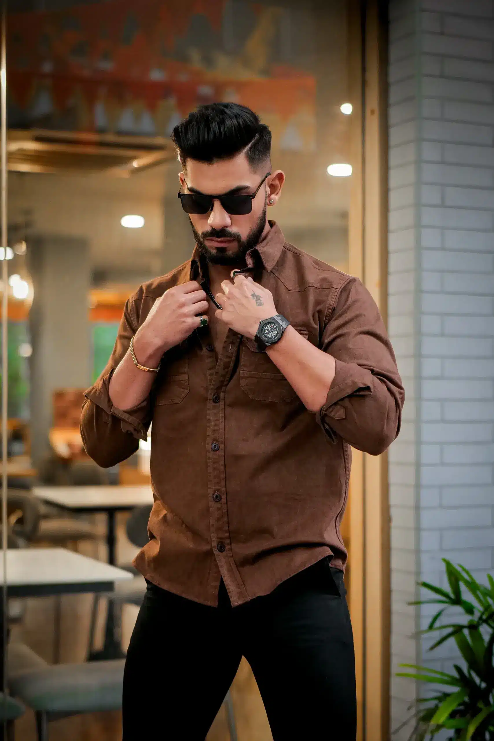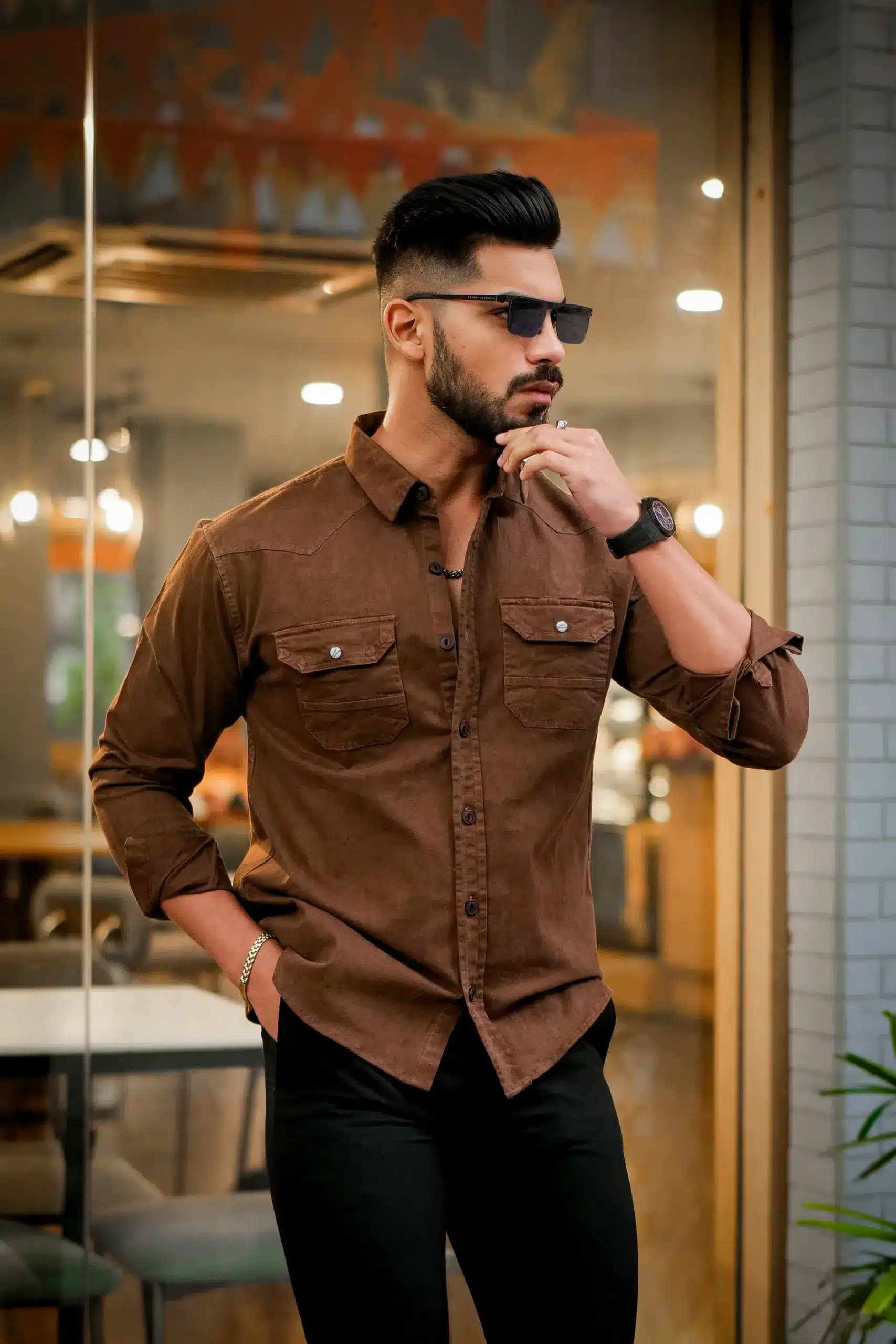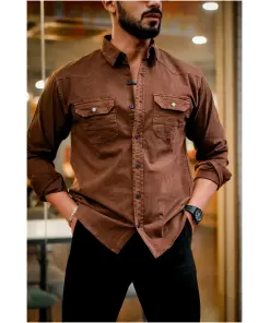 Brown Double Pocket Full Sleeve RFD Cotton Shirt – a versatile and practical addition to your wardrobe that combines functionality with timeless style. Crafted with attention to detail and premium-quality materials, this shirt offers the perfect blend of comfort and sophistication.