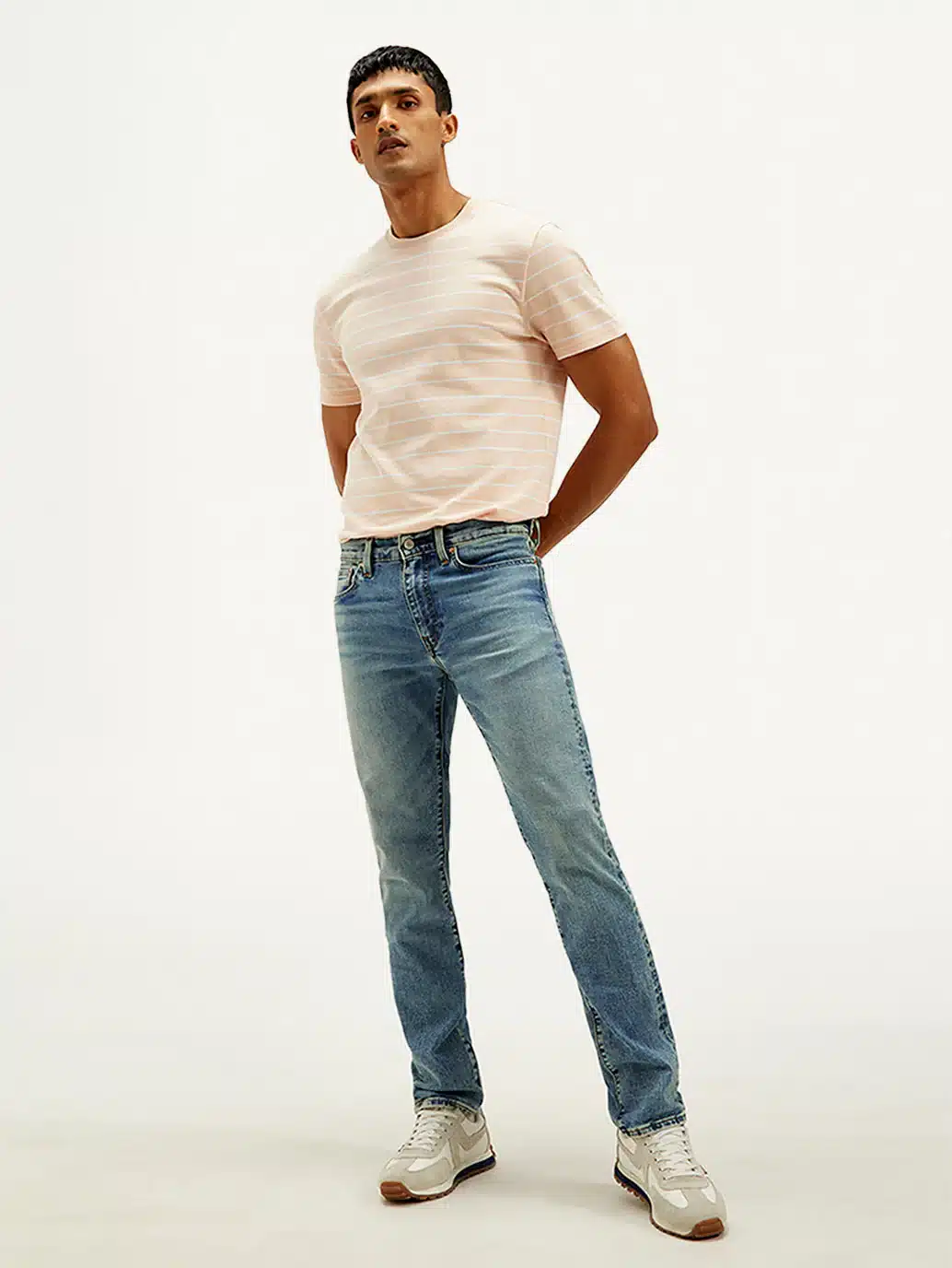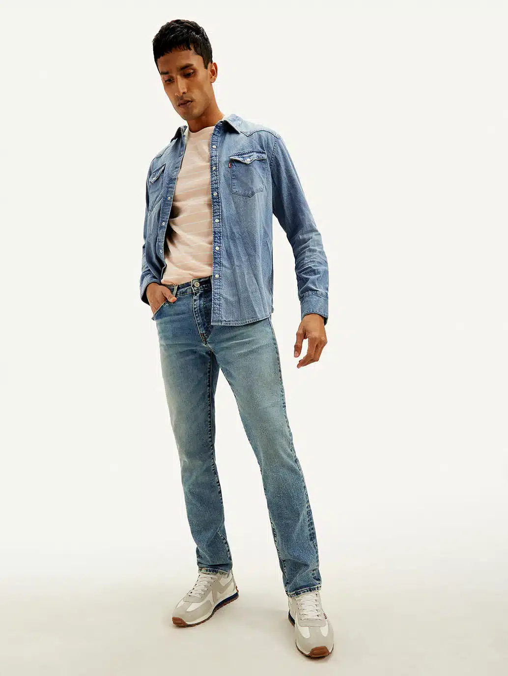 Classic 511 slim-fit light blue men’s jeans offer a perfect balance between modern style and all-day comfort. Designed with a slim yet comfortable fit, these jeans sit just below the waist and taper slightly from the thigh to the ankle, creating a sleek and flattering silhouette. The light blue wash gives them a fresh, laid-back look, making them an ideal choice for casual wear while still being versatile enough for a slightly dressed-up appearance. Whether paired with a t-shirt and sneakers for a relaxed outfit or a button-down shirt and loafers for a more refined style, these jeans adapt effortlessly to different occasions.