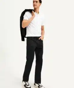 The mid-rise waist offers a secure fit, sitting comfortably just below the natural waistline. Classic five-pocket styling and a button-fly closure enhance their traditional appeal while maintaining a minimalist, polished look. Whether paired with a crisp white shirt and dress shoes for a refined outfit or a hoodie and sneakers for a laid-back streetwear aesthetic, the 513 slim straight black denim jeans are a must-have for men who appreciate effortless style with a contemporary edge.