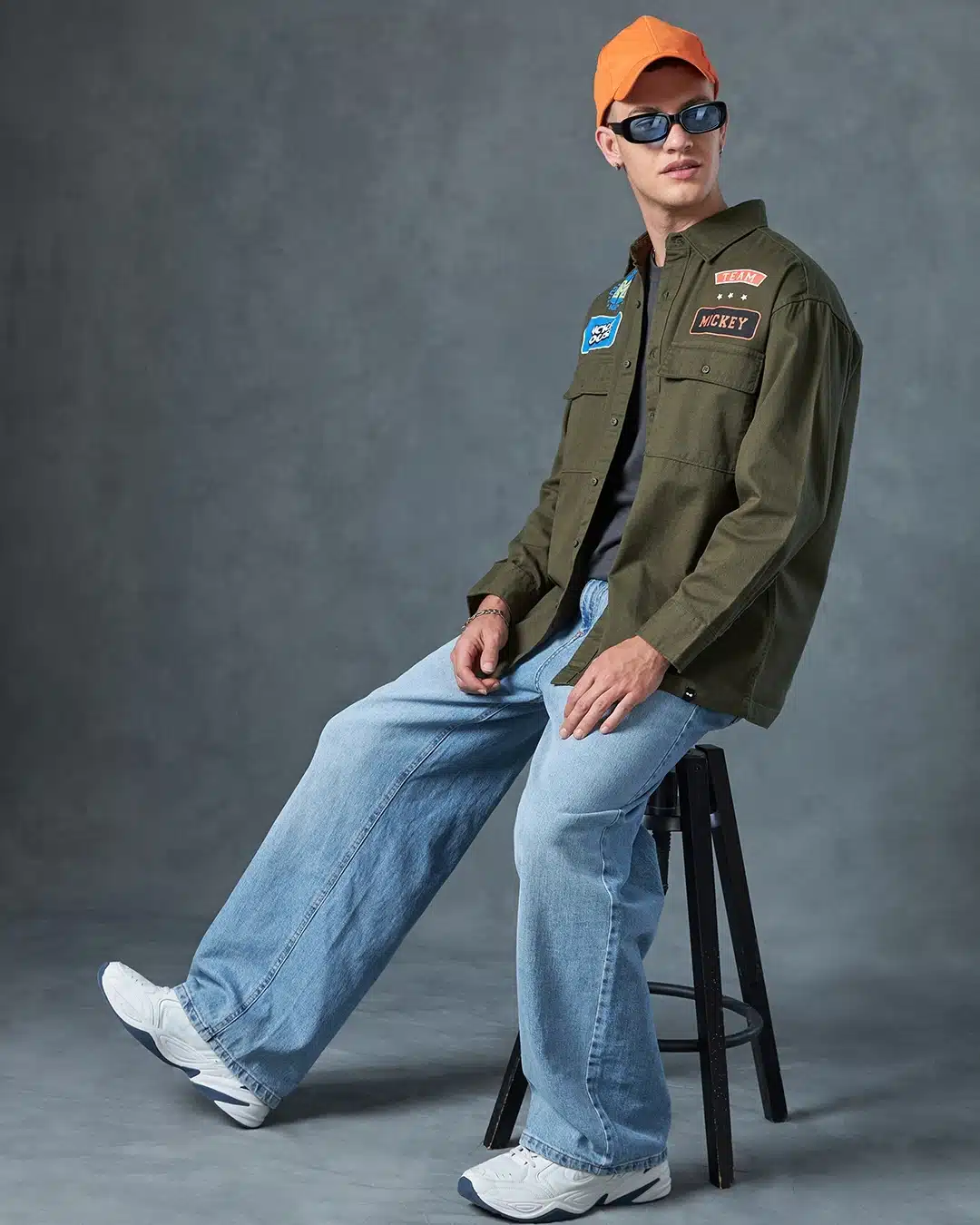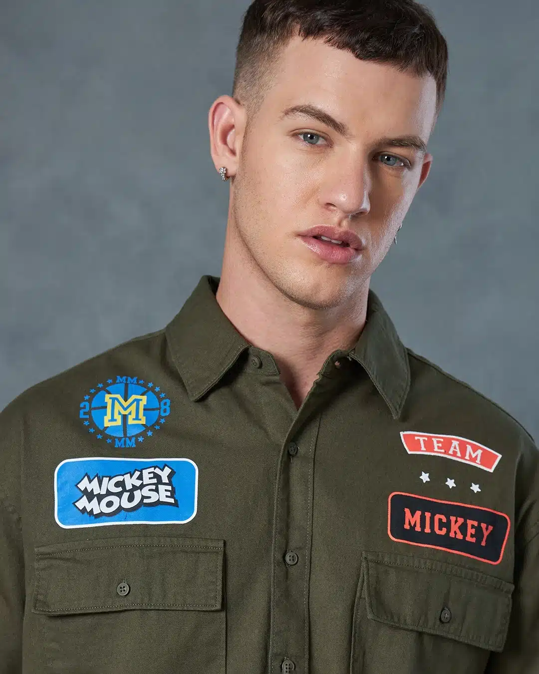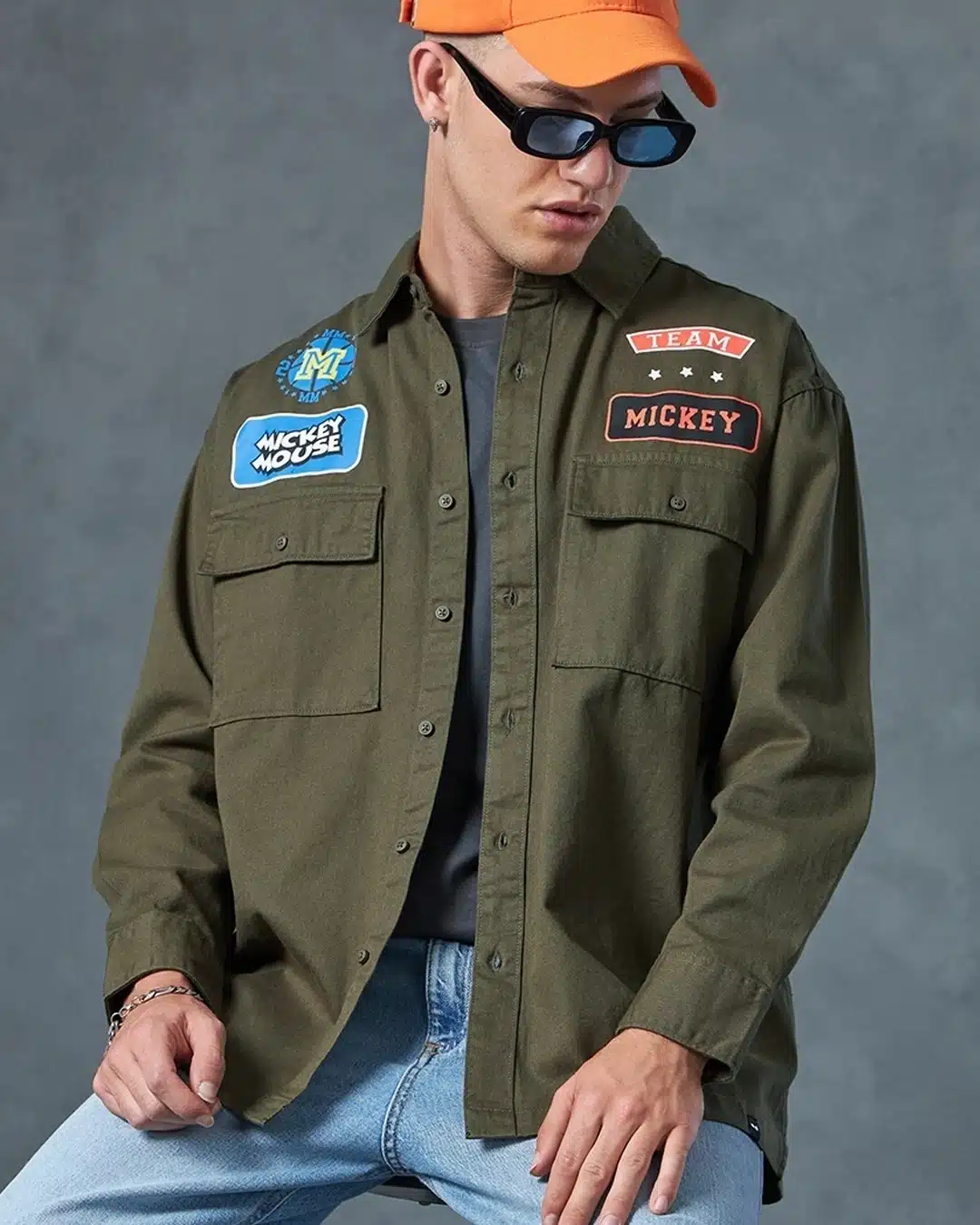 Style the Classic Mickey Badge Printed Oversized Shirt with baggy jeans, cargo pants, or shorts for a relaxed yet stylish look. Wear it open over a solid tee for a layered street-style aesthetic, or button it up for a bold, playful fashion statement. This shirt is a must-have for those who appreciate vintage Disney nostalgia combined with contemporary oversized fashion.