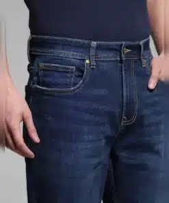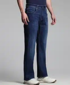 Cliff Fit dark blue bootcut jeans offer a perfect blend of classic style and modern comfort, making them an essential addition to any wardrobe. Designed with a mid-rise waist, these jeans sit comfortably on the hips, providing a secure and relaxed fit without feeling too tight or too loose. The bootcut silhouette offers a timeless appeal, tapering through the thighs before slightly flaring out at the hem, allowing for easy pairing with a variety of footwear, from sneakers to boots.