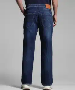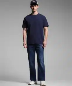 Crafted from high-quality denim, these jeans are designed for durability and long-lasting comfort. The dark blue wash adds a sophisticated touch, featuring subtle fading and whiskering that enhance their vintage-inspired aesthetic. With just the right amount of stretch, these jeans provide flexibility and ease of movement, making them ideal for all-day wear, whether you’re heading to work, out for a casual outing, or attending an evening gathering.