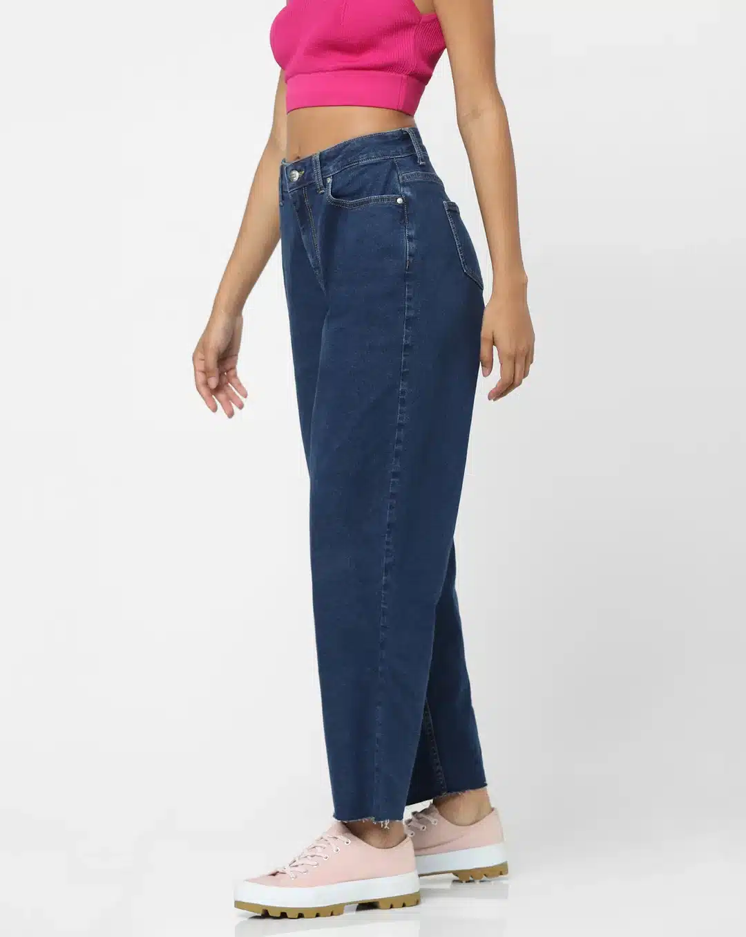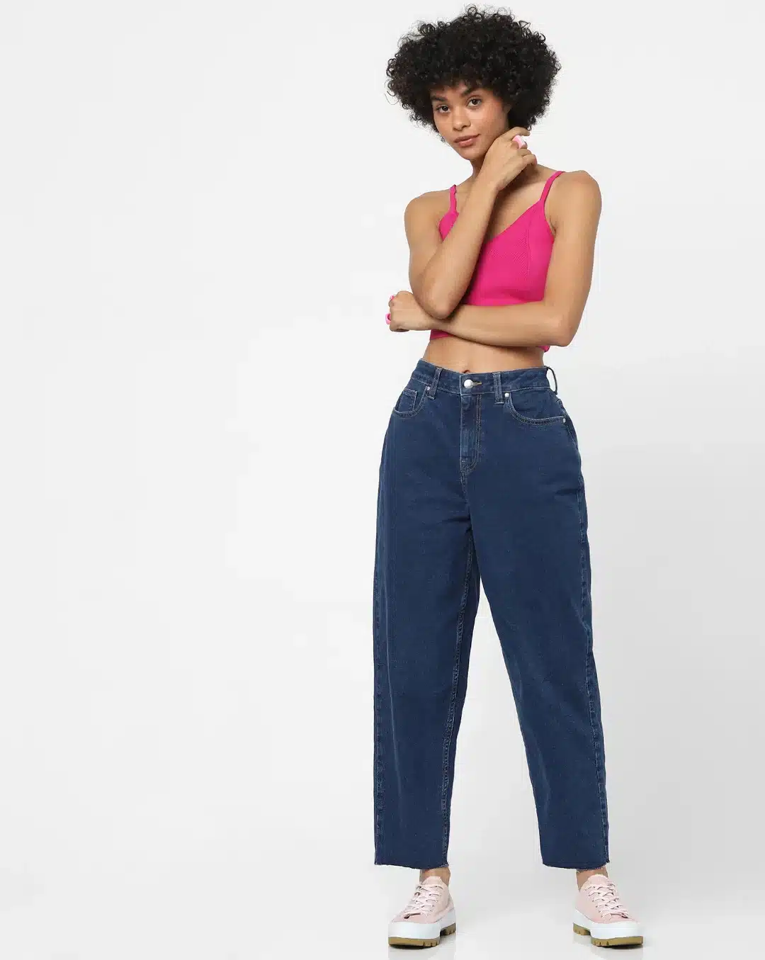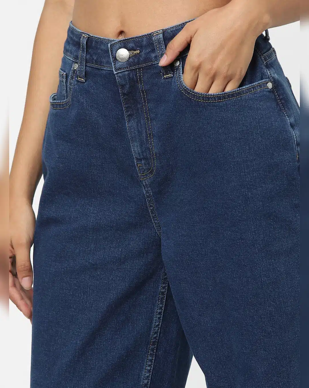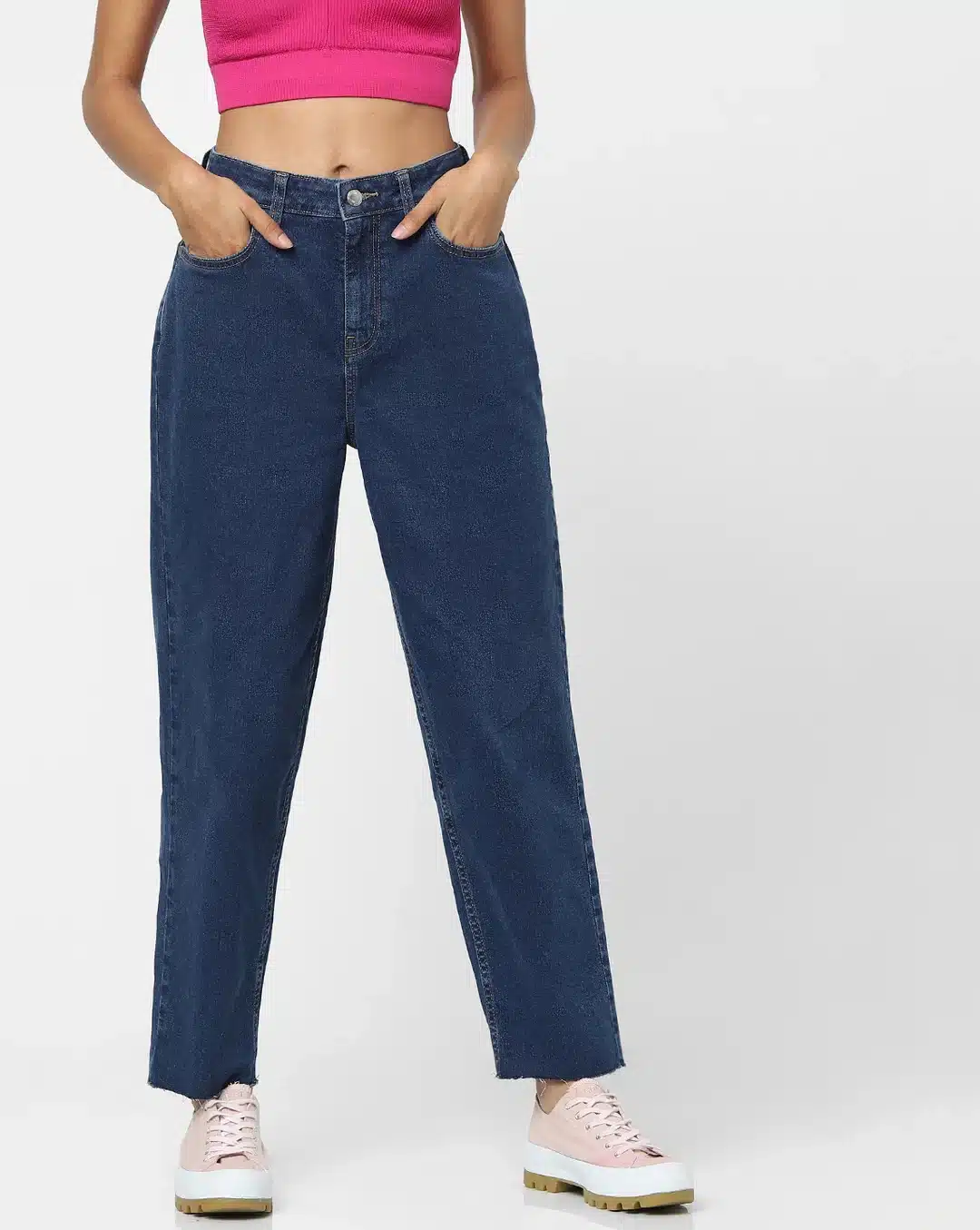 • Dark Blue High Waist Mom Jeans: Embrace retro-inspired style with these trendy high-waisted mom jeans in a dark blue wash.
