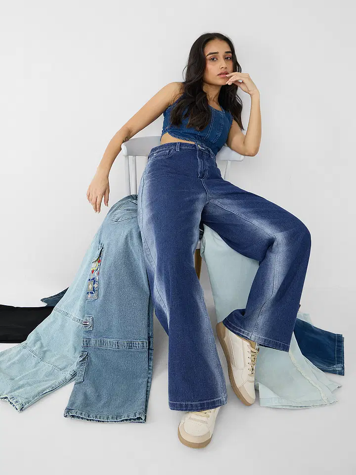 Dark Ombre Blue (Wide Leg) Women Jeans