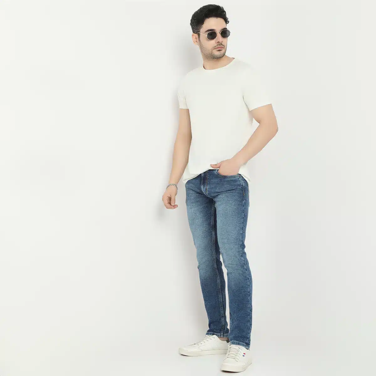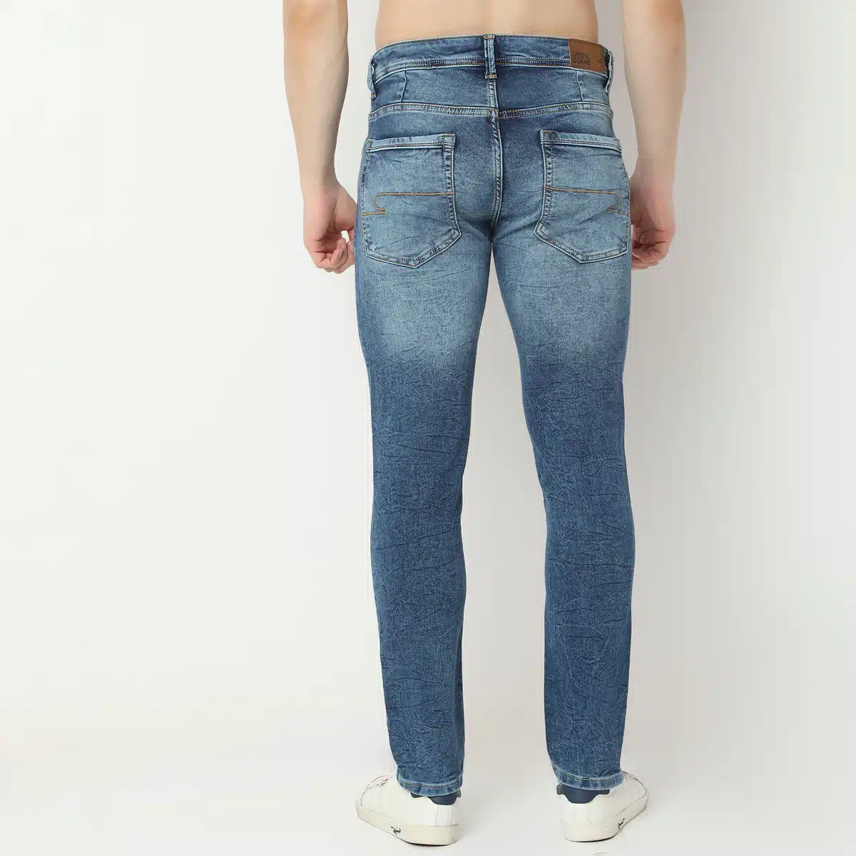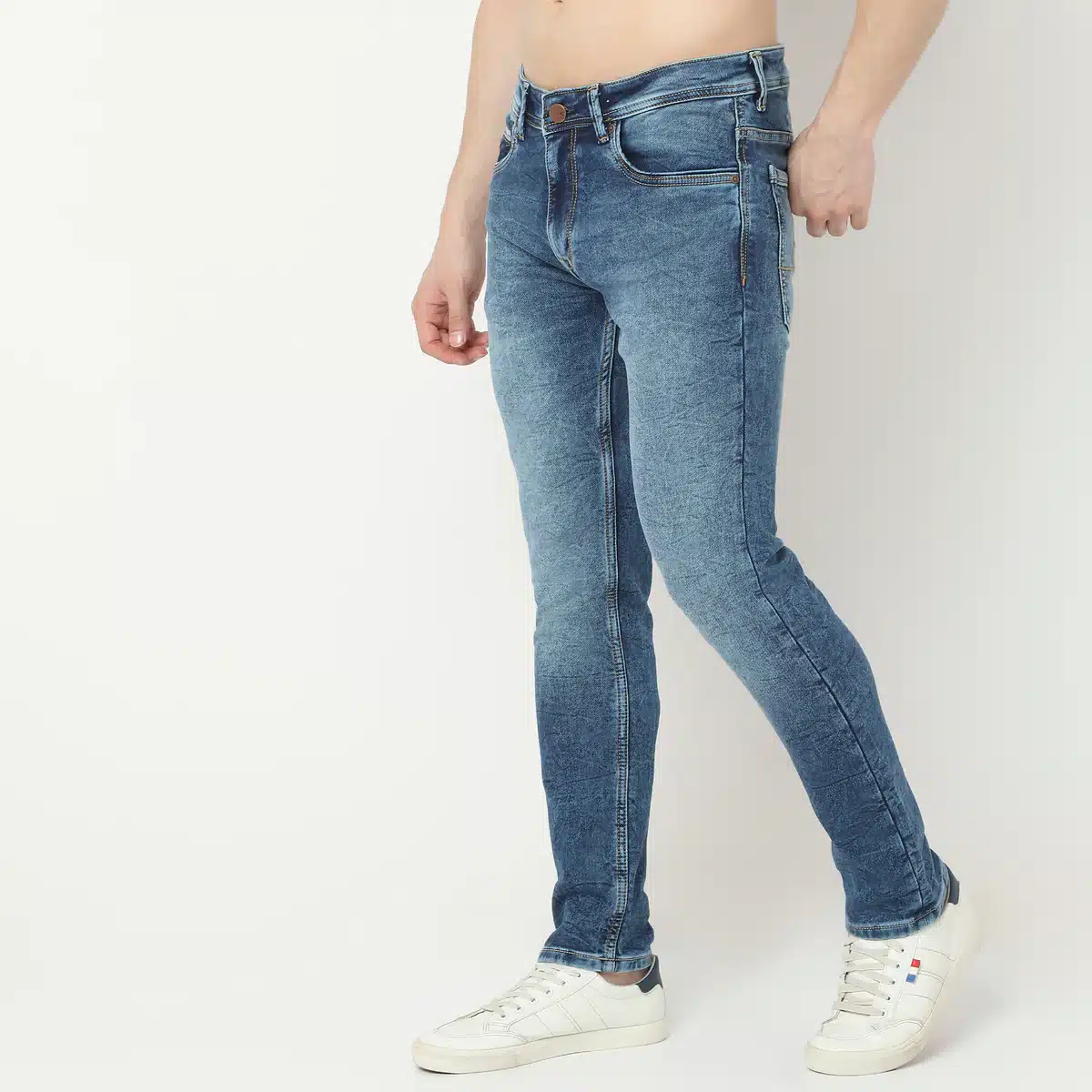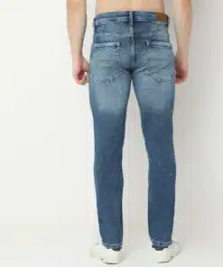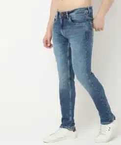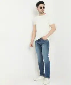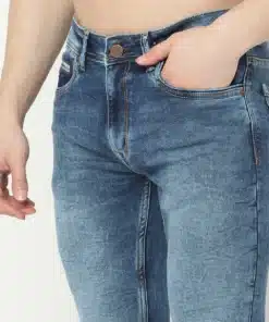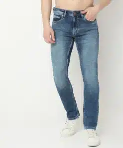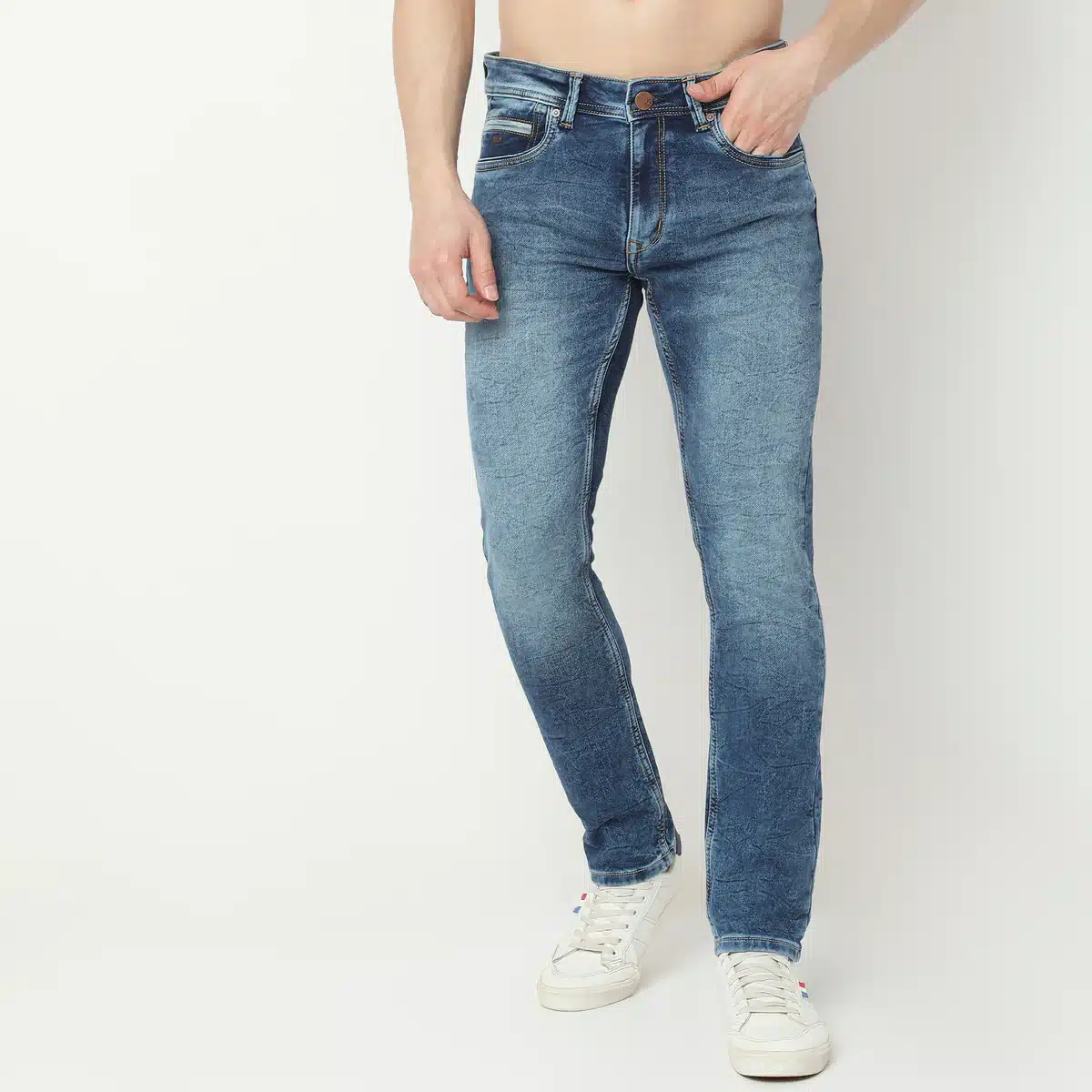 E-Fast stretch slim-fit indigo jeans with a towel wash finish offer a perfect fusion of comfort, style, and a unique textured look. Designed with a slim fit, these jeans provide a modern, tapered silhouette that flatters the body while ensuring ease of movement. The stretch denim fabric enhances flexibility, making them ideal for all-day wear without compromising on style. Sitting at a comfortable mid-rise, these jeans provide a secure fit around the waist while maintaining a sleek, streamlined appearance from the thighs down to the ankles.