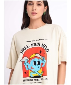 Crafted from premium quality fabric, this oversized tee offers unparalleled comfort and versatility. But what truly sets it apart is its captivating “Free Your Mind” print. With bold, expressive typography, this tee serves as a reminder to liberate your thoughts and express yourself freely.