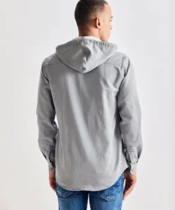 The grey wash gives the shirt a slightly faded, lived-in look that enhances its urban aesthetic. It’s perfect for layering over a basic T-shirt or wearing under a bomber or puffer jacket for added warmth and style. The combination of denim structure and hooded comfort makes it a go-to option for casual outings, travel, or weekend wear.