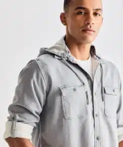 One of the standout features of this denim shirt is its attached hood, which enhances both its aesthetic appeal and practicality. The hood is usually lined with soft fabric for extra comfort and warmth, making it a great option for cool days or breezy evenings. Whether you’re heading out for a casual day in the city, a road trip, or a weekend outing, the hooded design adds a sporty, laid-back touch to your look.