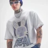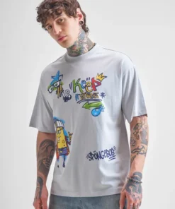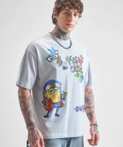 Grey Spongebob Printed Round Neck Oversized Fit T-Shirt