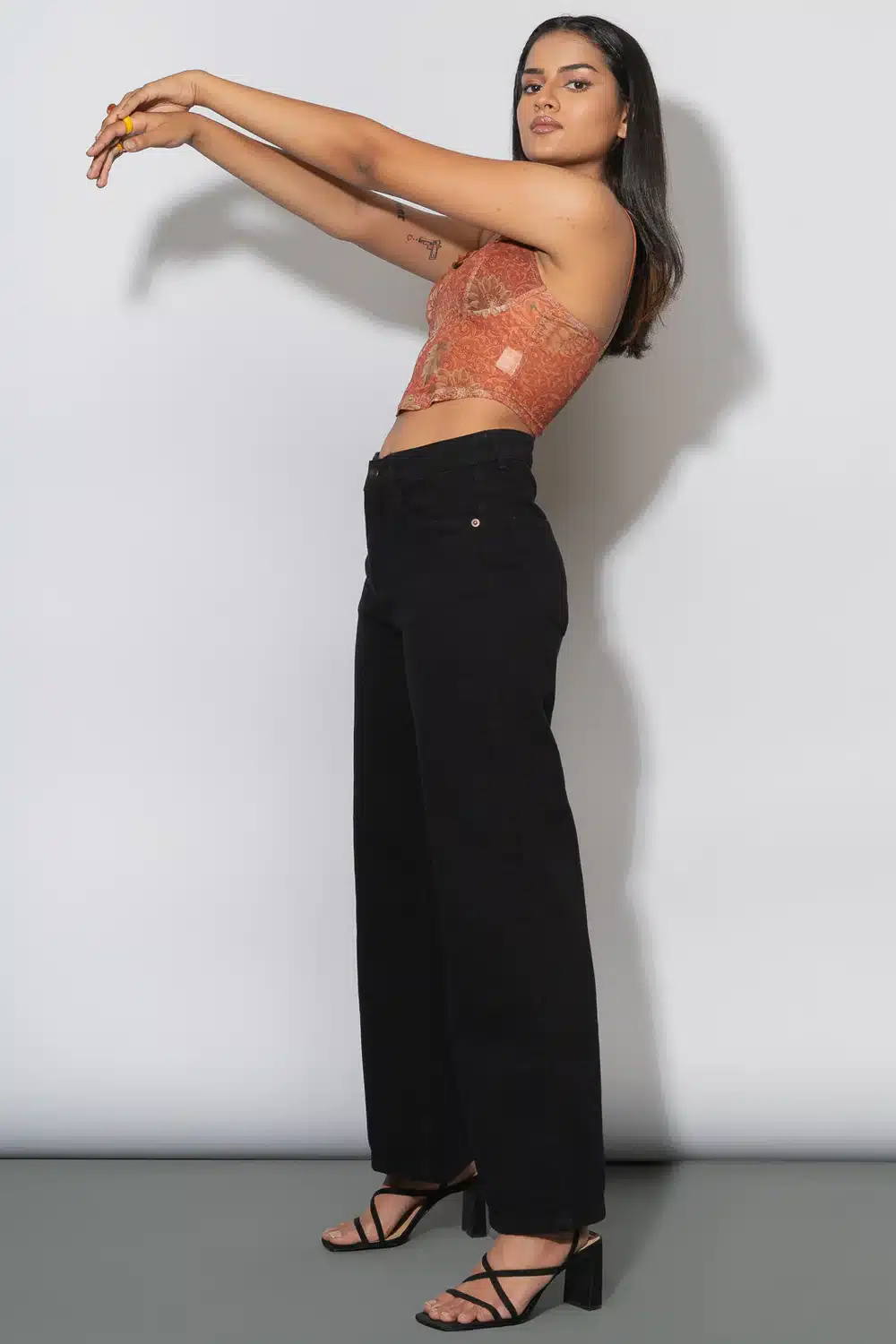 Jet Black Wide Jeans for Women, a bold and versatile addition to any wardrobe. These jeans combine comfort, style, and sophistication, offering a flattering high-rise fit that cinches at the waist and elongates the legs. The wide-leg silhouette creates a relaxed yet polished look, providing plenty of room for movement without sacrificing style. Whether you’re going for a laid-back casual vibe or looking to elevate your evening ensemble, these jeans are the perfect choice for women who love effortless elegance with a contemporary twist.