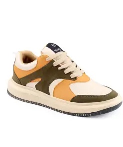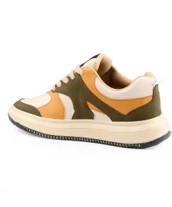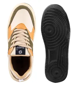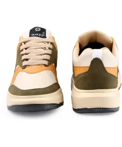 Men’s Beige & Yellow Color Block Casual Shoes. Elevate your everyday style with these sophisticated yet laid-back kicks, designed to seamlessly blend comfort and fashion.