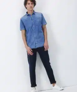 Designed with a classic button-down front and a traditional collar, the Men’s Blue Denim Solid Casual Shirt exudes a simple yet refined aesthetic. The absence of patterns or embellishments gives it a clean and sleek appearance, making it an easy piece to pair with almost anything in your wardrobe. The deep blue shade of denim creates a versatile foundation that works well with jeans, chinos, or shorts, offering endless outfit possibilities for a variety of occasions.