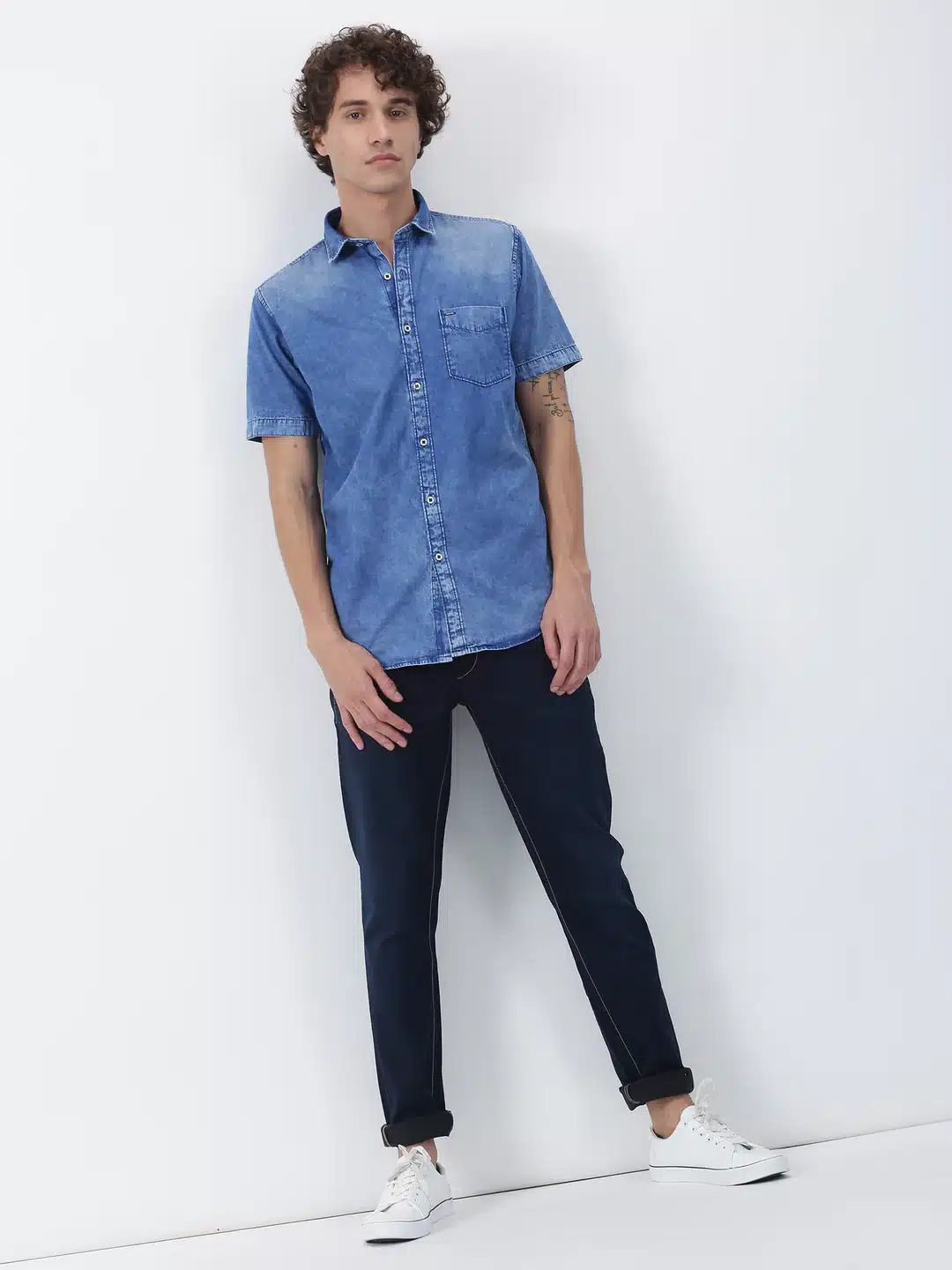 Whether layered over a t-shirt, paired with a sweater, or worn as the focal point of an outfit, this shirt is the epitome of versatility. It’s easy to dress up with trousers for a more refined casual look or dress down with your favorite jeans for a relaxed, go-anywhere outfit. The Men’s Blue Denim Solid Casual Shirt is a wardrobe essential that combines the timeless appeal of denim with the perfect blend of casual style and practical comfort, making it a must-have for any man looking to enhance his wardrobe with a reliable and stylish piece.