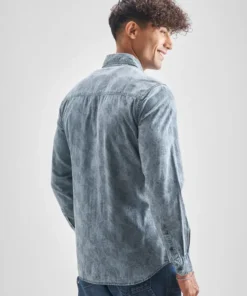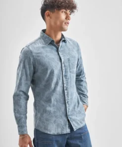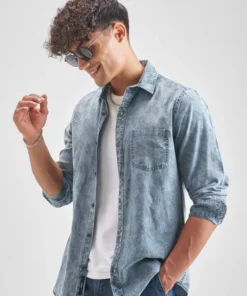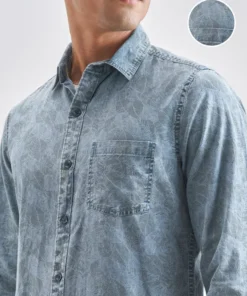 Designed with timeless details, this shirt includes a button-down front, full sleeves, and a structured collar, giving it a refined edge while retaining the rugged charm of denim. The patterned weave enhances its individuality, setting it apart from plain denim shirts and lending a touch of sophistication to your everyday wardrobe. The rich blue hue with subtle fading adds depth and dimension, creating a versatile piece that can be styled effortlessly.