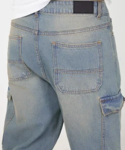 Designed with functionality in mind, these jeans include multiple spacious cargo pockets along with traditional side and back pockets, offering both practicality and style. The subtle fading and whiskering effects add texture and depth, enhancing the vintage-inspired charm. Reinforced stitching along the seams and pocket edges provides added durability, making these jeans ideal for everyday wear without compromising on comfort or movement.
