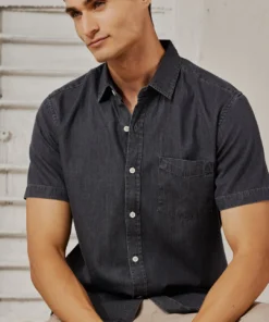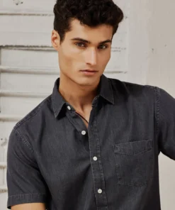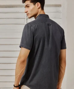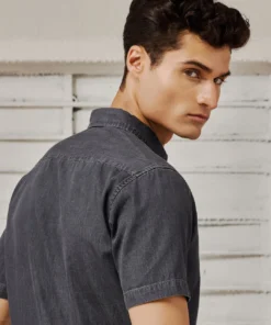 Men’s Dark Grey Satin-Finish Denim Shirt