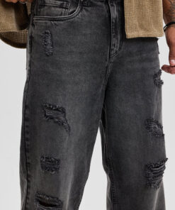 Perfect for pairing with oversized hoodies, graphic tees, or layered streetwear pieces, these jeans can be styled in multiple ways to match your personal aesthetic. The loose fit makes them ideal for a relaxed, laid-back outfit, while the charcoal grey tone keeps them modern and sleek. Whether worn with high-top sneakers for a casual street-style look or paired with boots for a rugged edge, these distressed charcoal grey loose-fit jeans are a must-have for those who appreciate fashion with an urban attitude.