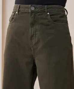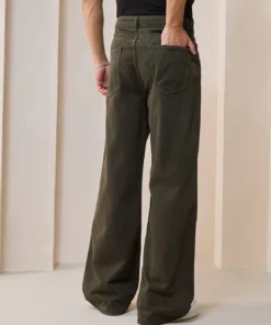 Functional details like five classic pockets, belt loops, and a zip-fly button closure ensure practicality and timeless denim appeal. The olive green color pairs seamlessly with neutral tones, allowing easy coordination — style it with a white oversized tee and sneakers for a streetwear look or with a fitted shirt for a more balanced, trendy appearance.