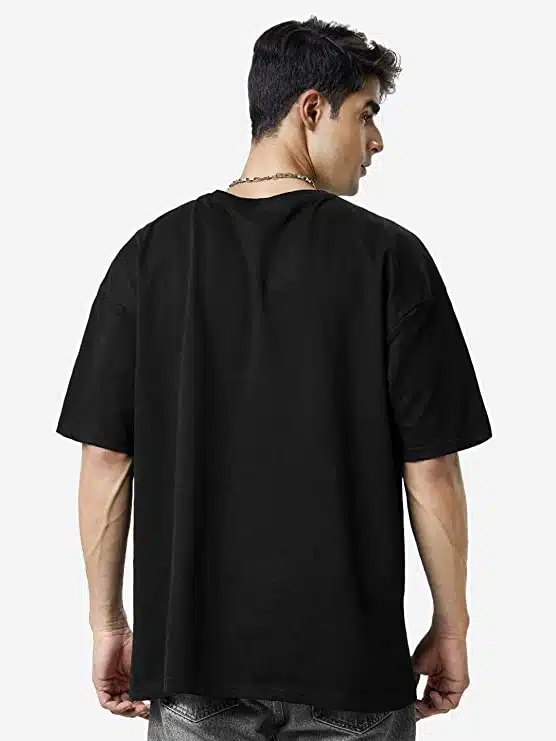 Men’s Black Cottonblend Oversized Round Neck T-Shirt – a modern and comfortable wardrobe essential that seamlessly blends a relaxed silhouette with the timeless appeal of black.
