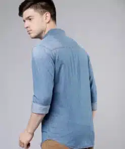 Featuring a classic button-down front, this denim shirt allows for easy wearability while maintaining a structured and polished appearance. The well-defined collar adds a refined touch, making it suitable for both casual and smart-casual occasions. Designed with full sleeves, you can roll them up for a relaxed and effortless vibe or keep them buttoned for a more structured and polished appeal. The twin chest pockets with button closures not only enhance the shirt’s rugged aesthetics but also offer functional storage for small essentials.
