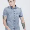 Versatility is one of the biggest strengths of this Men’s Slim Fit Blue Faded Denim Shirt. It can be effortlessly paired with a wide range of bottoms, from classic blue or black jeans for a denim-on-denim look to chinos or cargo pants for a balanced casual ensemble. For a more layered and stylish appeal, wear it open over a plain t-shirt or under a stylish jacket during colder months.