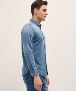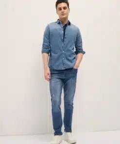 The Mid Blue Denim Shirt with Classic Button-Down Design is a timeless wardrobe essential that combines rugged durability with refined casual style. Crafted from high-quality denim fabric, this shirt is designed to provide both comfort and versatility, making it a go-to choice for everyday wear. The mid-blue wash gives it a classic, lived-in look that adds character while maintaining a polished appeal. Whether worn as a standalone piece or layered over a T-shirt, this denim shirt effortlessly enhances any outfit with its stylish yet laid-back aesthetic.