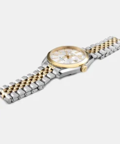 The watch is housed in a polished stainless steel case that exudes strength and sophistication. Designed for durability as well as comfort, the stainless steel bracelet features a secure clasp and a smooth, contoured fit that conforms naturally to your wrist. Its seamless integration with the case enhances the sleek profile of the watch, making it ideal for sliding under a shirt cuff or standing out as a standalone accessory.