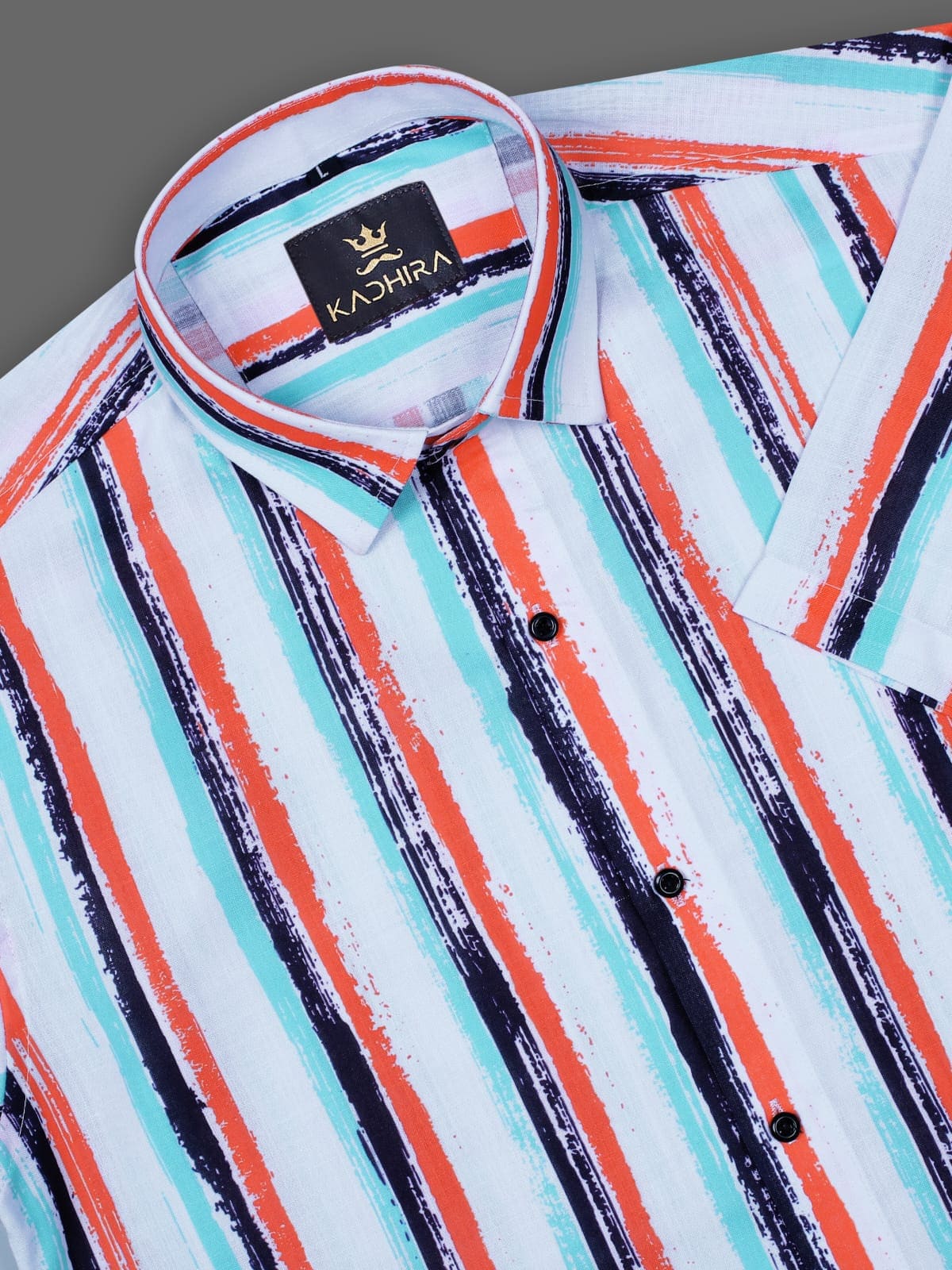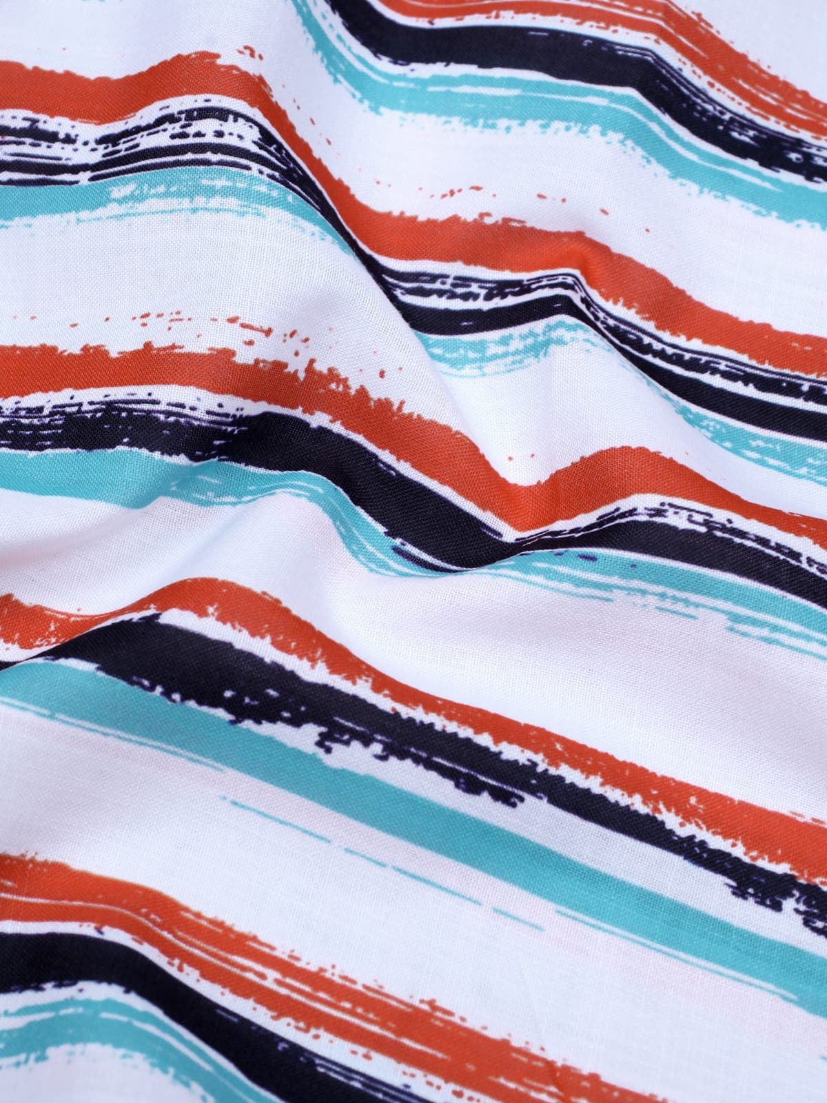Featuring an eye-catching digital print with a harmonious blend of colors, this shirt is a celebration of individuality and contemporary style. The lively stripes add a playful and dynamic element, creating a visual feast that captures attention.