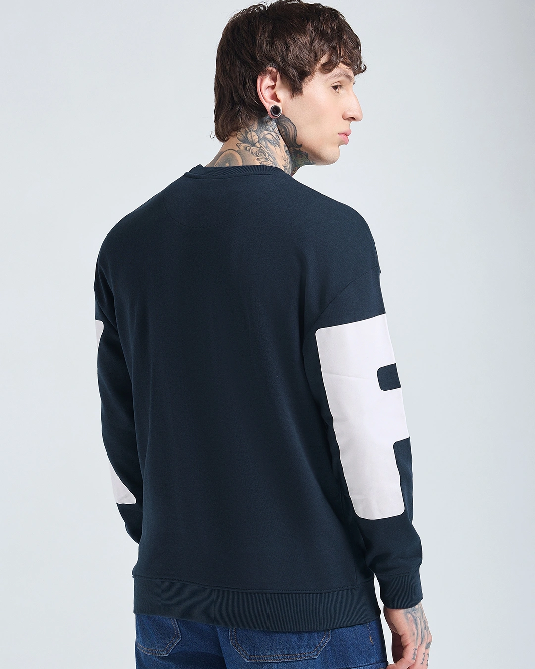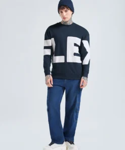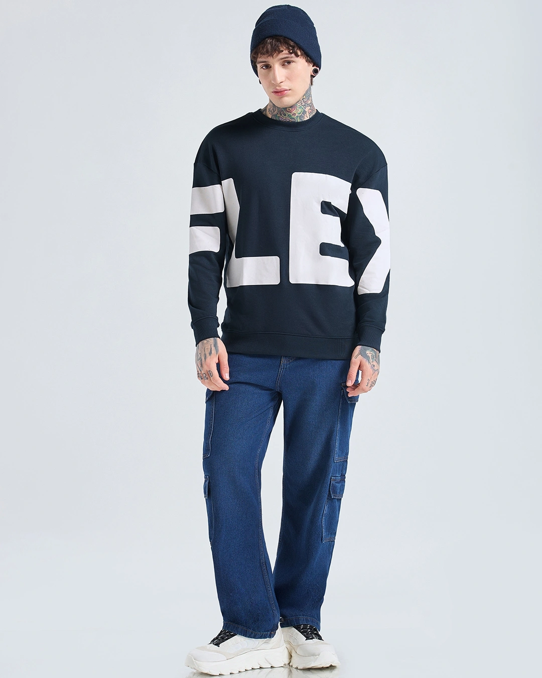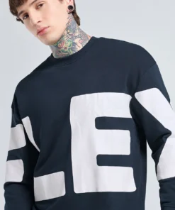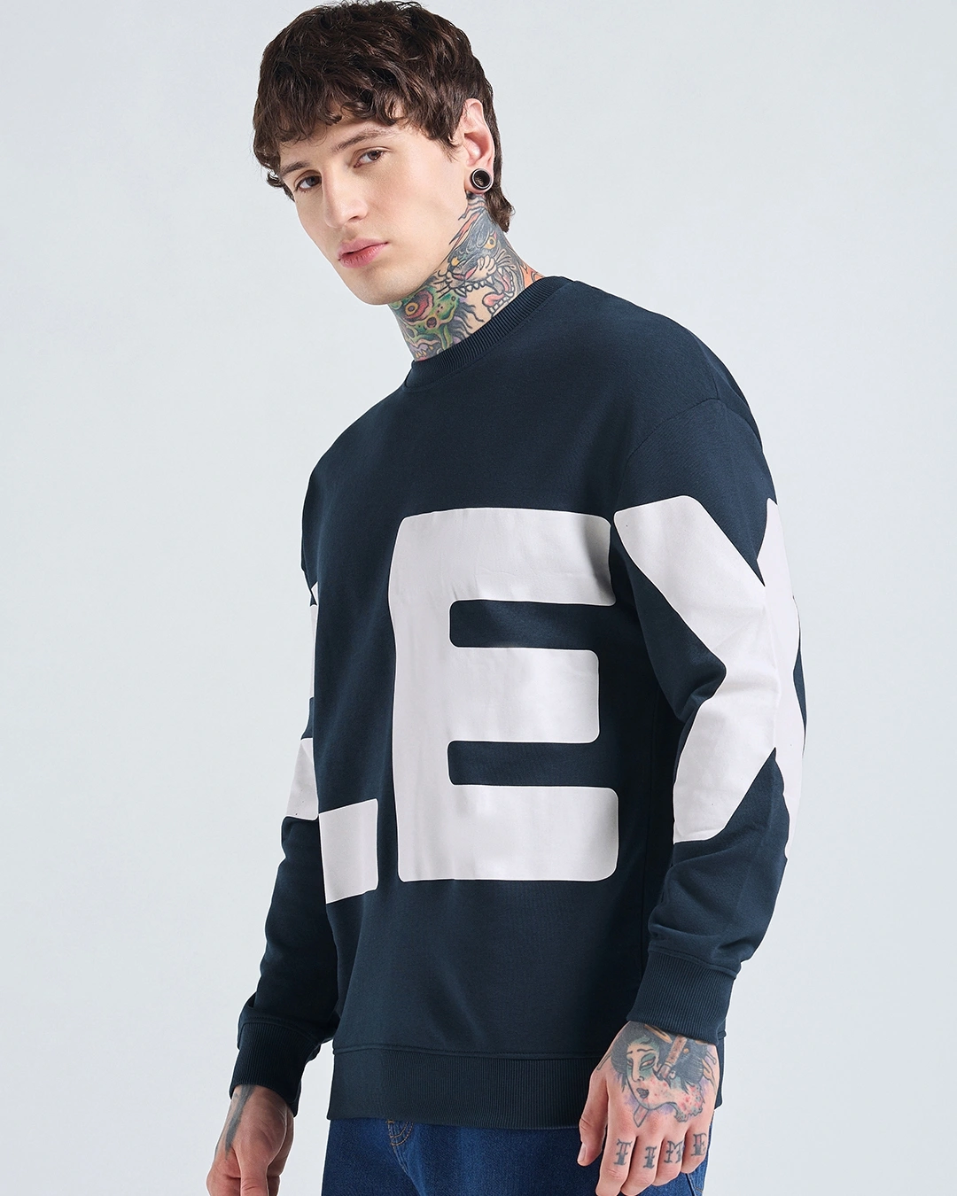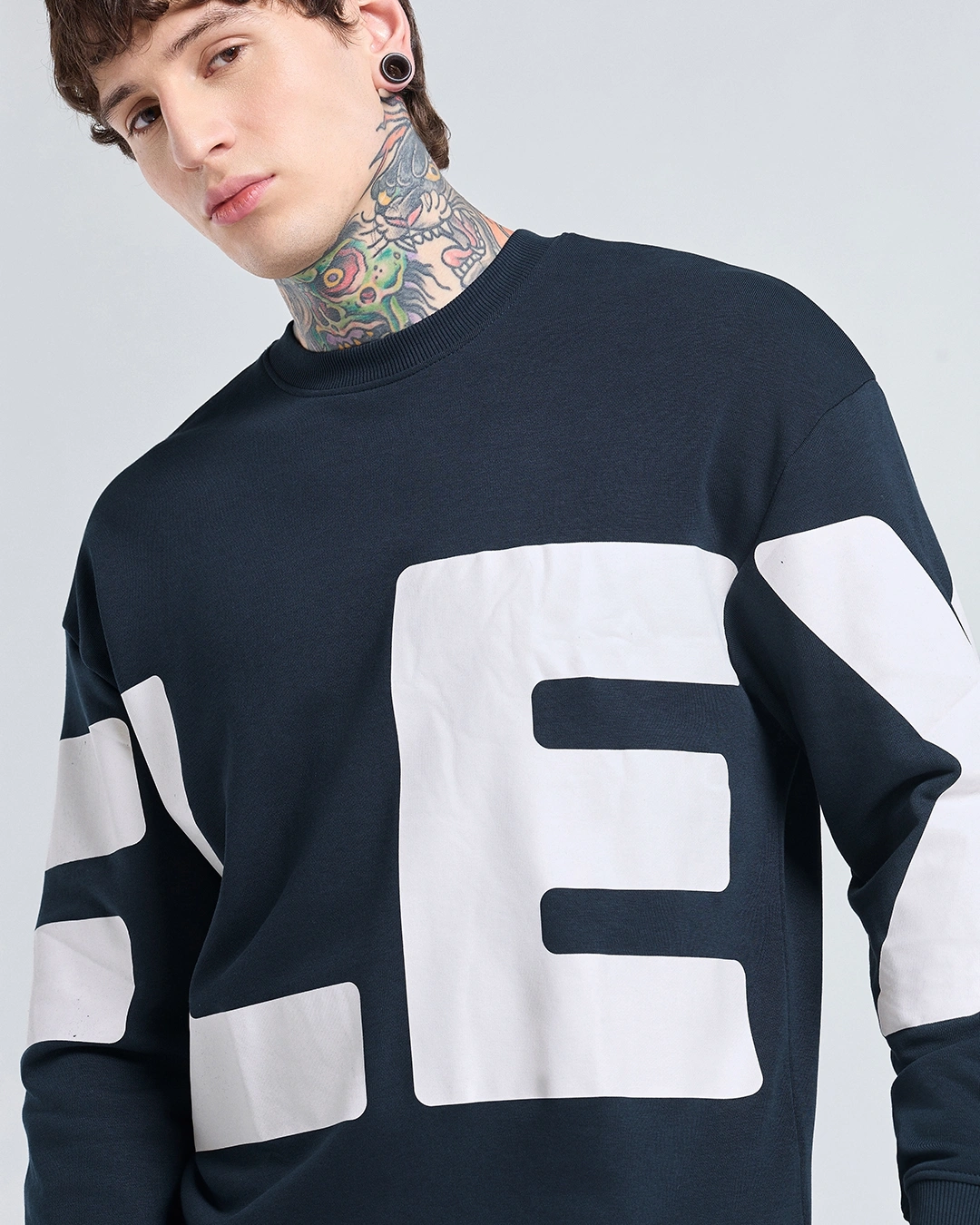 In essence, the Navy Blue Typography Oversized Sweatshirt is a must-have wardrobe essential that combines effortless comfort with a bold, fashionable statement.