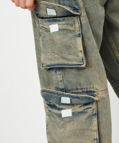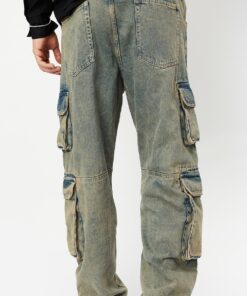 Crafted from premium washed denim, these jeans have a vintage-inspired faded effect that enhances their rugged and worn-in charm. The cargo-style design includes multiple spacious pockets on the sides, along with classic back and front pockets, offering both practicality and an edgy, street-style vibe. Reinforced stitching and durable belt loops ensure long-lasting wear, while the mid-rise waist provides a secure and comfortable fit.