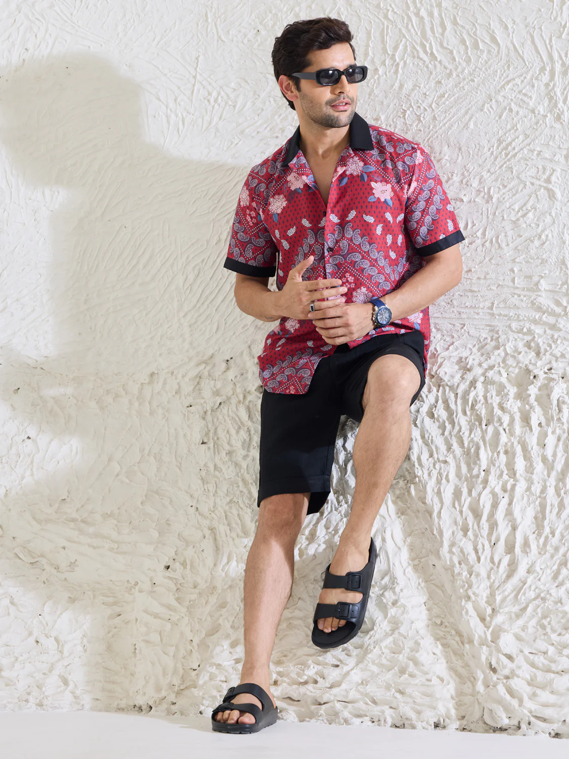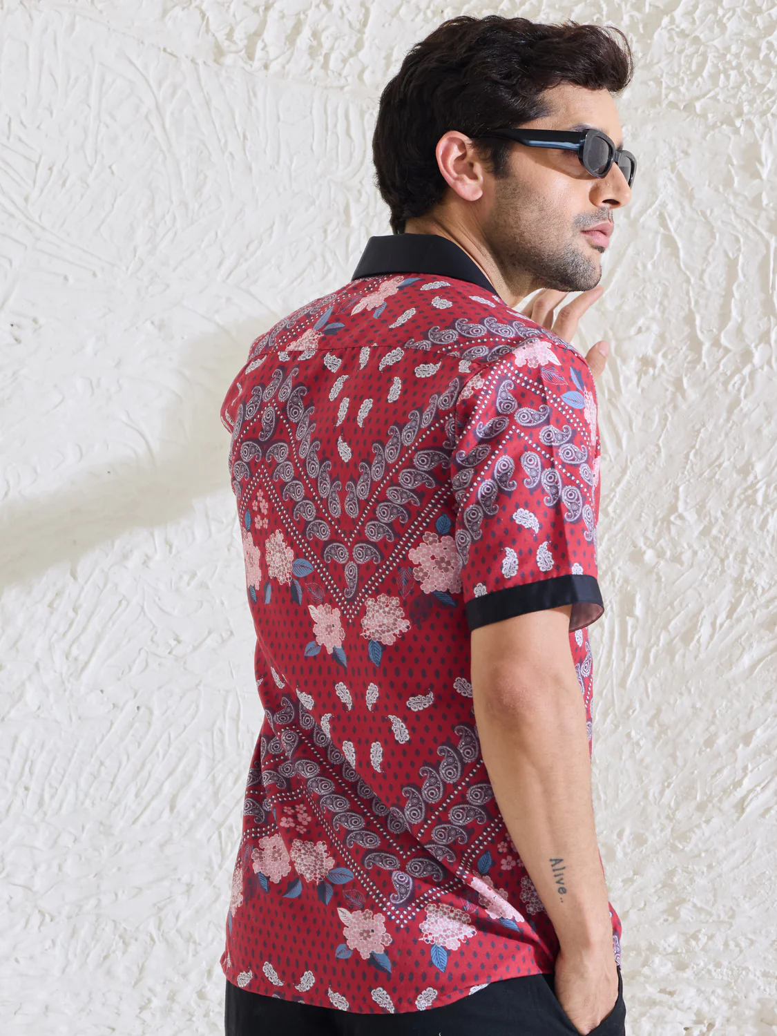 The Stylish Red Motif Shirt Featuring Bold Patterns and a Sophisticated Urban Look is a striking blend of vibrant energy and refined modern design. Crafted for those who appreciate fashion that makes a confident statement, this shirt embodies a perfect harmony between bold artistic flair and contemporary sophistication. The deep red base radiates warmth, passion, and individuality, while the intricate motif patterns add depth and dimension, giving the shirt a visually dynamic presence. Each motif is carefully placed to create balance and rhythm across the fabric, resulting in an eye-catching design that feels both expressive and tasteful. The rich color tone not only enhances the shirt’s visual appeal but also complements a wide range of skin tones, making it a versatile addition to any wardrobe.
