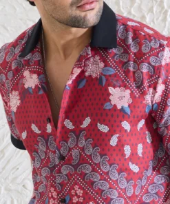 Every element of this shirt—from its color palette to its fit and construction—reflects a commitment to quality and sophistication. It’s more than just a piece of clothing; it’s a reflection of modern artistry, confidence, and attention to detail. The Stylish Red Motif Shirt Featuring Bold Patterns and a Sophisticated Urban Look redefines contemporary menswear by merging expressive design with refined tailoring, resulting in a piece that is as versatile as it is captivating. It is ideal for those who value bold aesthetics, superior comfort, and timeless urban style in equal measure.
