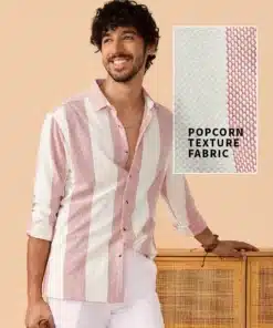 The Trendy Cerise Textured Stripes Shirt for Men is a bold and stylish statement piece that effortlessly blends modern fashion with classic charm. The rich cerise hue, accented by subtle textured stripes, adds depth and sophistication to the design, making it a standout choice for any occasion. Whether you’re heading to a casual outing, a dinner date, or a stylish evening event, this shirt ensures you step out with confidence and flair.
