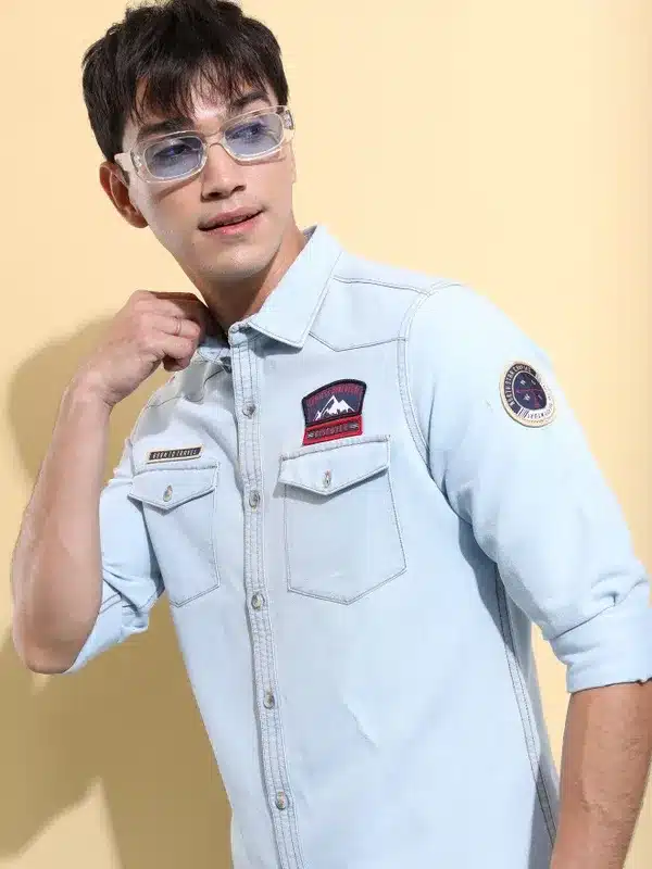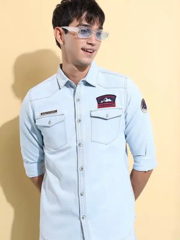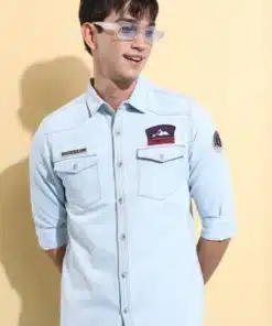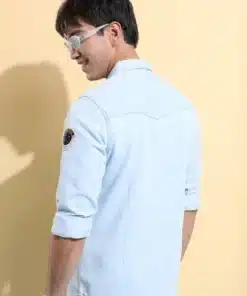 Trendy Light Wash Slim Fit Denim Shirt, a must-have wardrobe essential for modern men who appreciate fashion-forward designs and timeless appeal. Crafted from a high-quality denim fabric blend, this shirt offers superior comfort, breathability, and durability, making it an ideal choice for all-day wear. The light wash finish lends a laid-back yet sophisticated vibe, perfect for creating effortlessly stylish outfits.