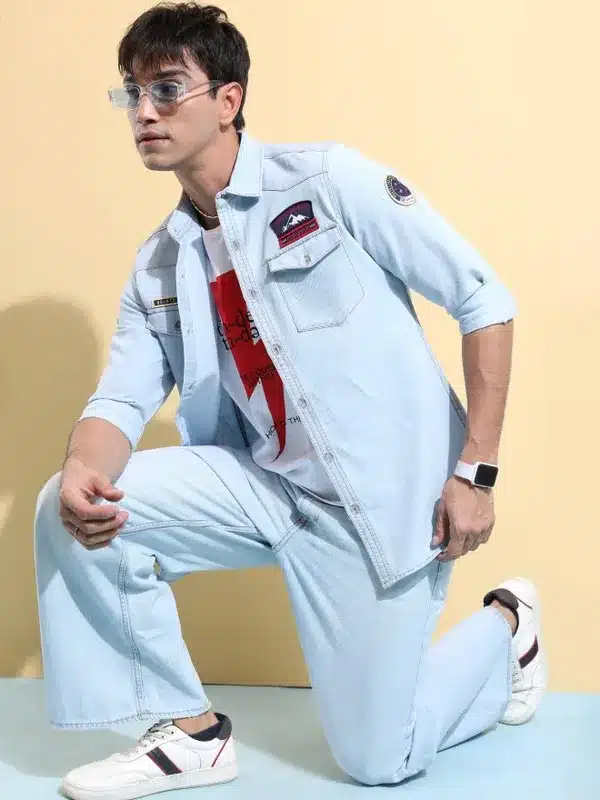 Versatility is a key highlight of this denim shirt. Pair it with black jeans and sneakers for a modern urban look, or wear it with chinos and loafers for a semi-formal ensemble. For a bold statement, layer it over a plain white T-shirt or style it under a jacket or blazer for a refined, layered outfit. Whether you button it up for a smart look or leave it open for a relaxed feel, this denim shirt adapts effortlessly to your styling preferences.
