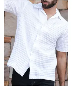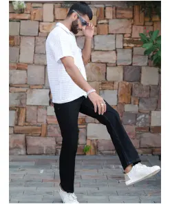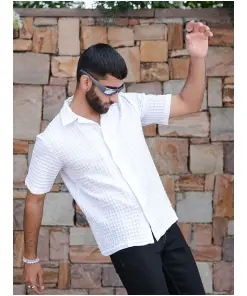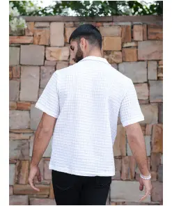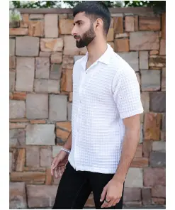 White Oversized Checks Popcorn Texture Half Sleeves Shirt