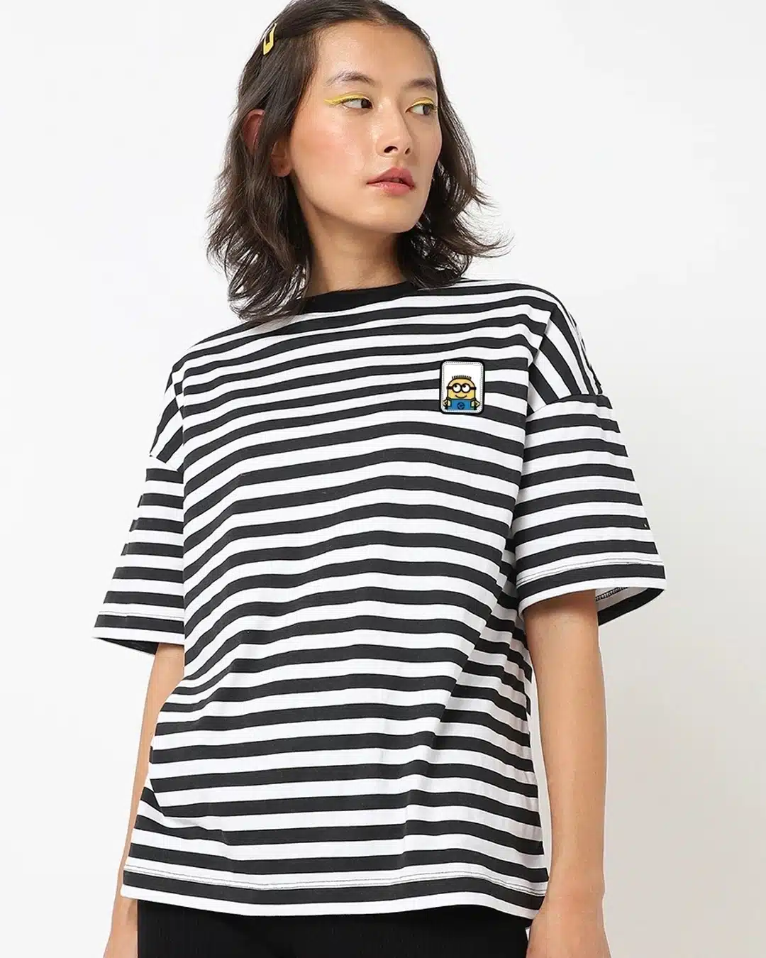 • Product: Women’s White Minion Striped Oversized T-shirt