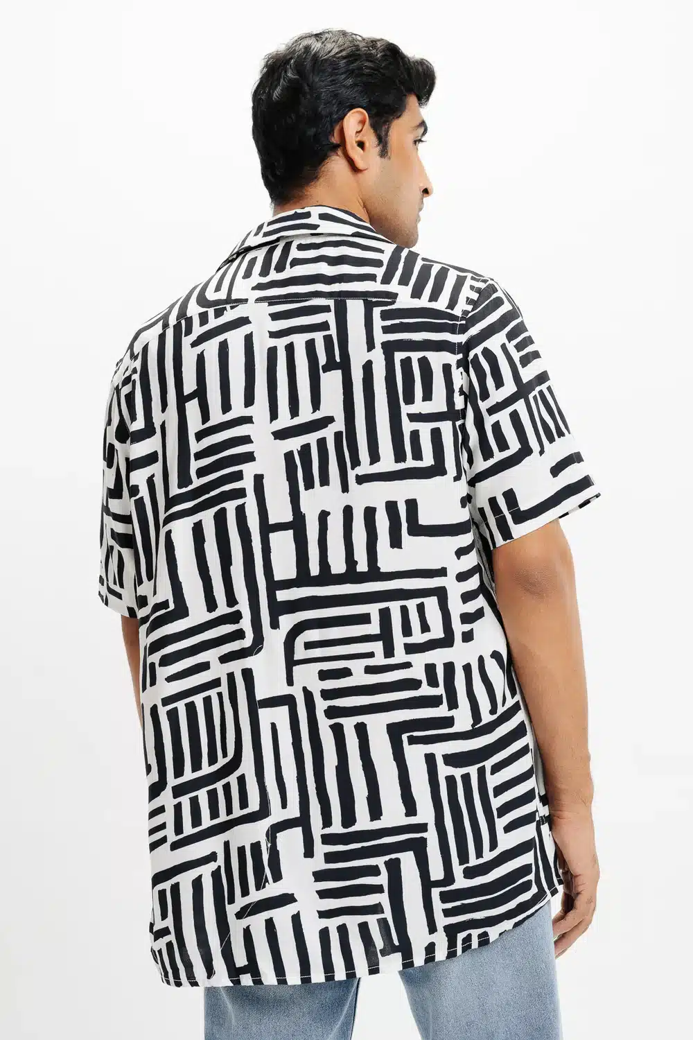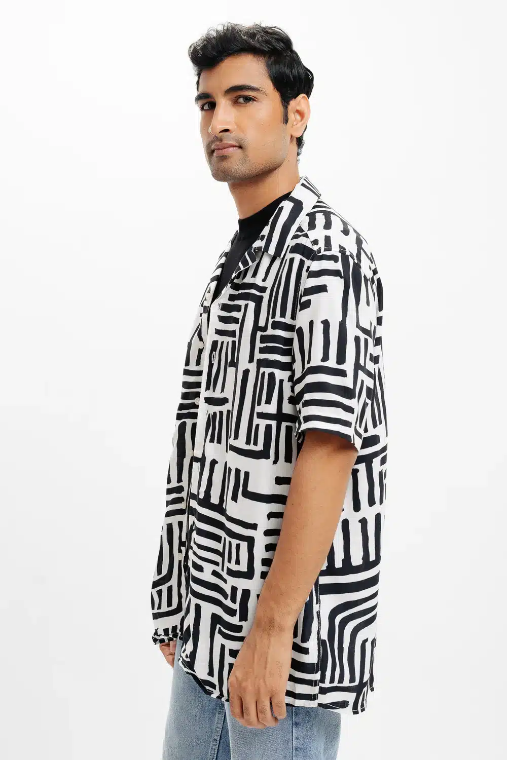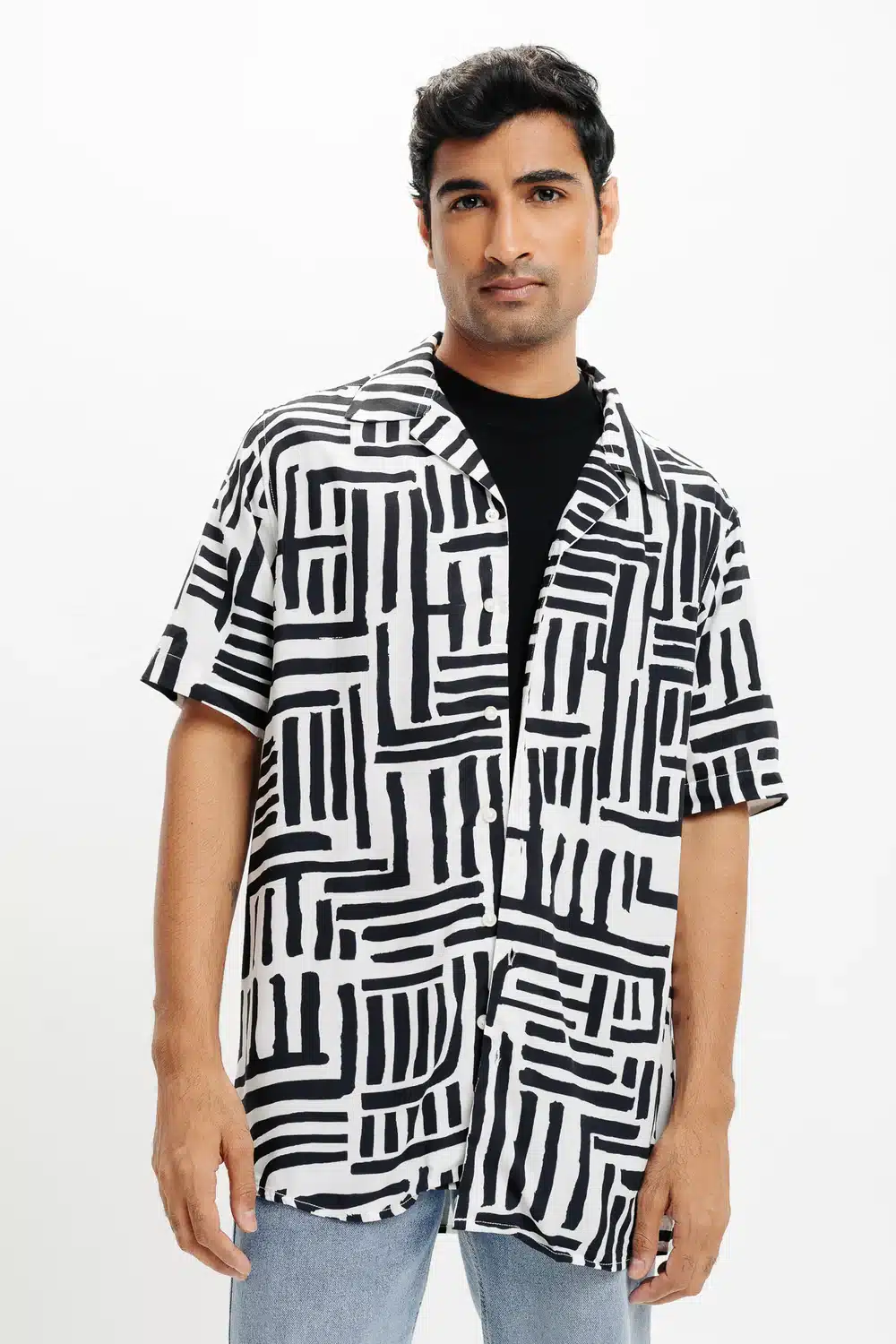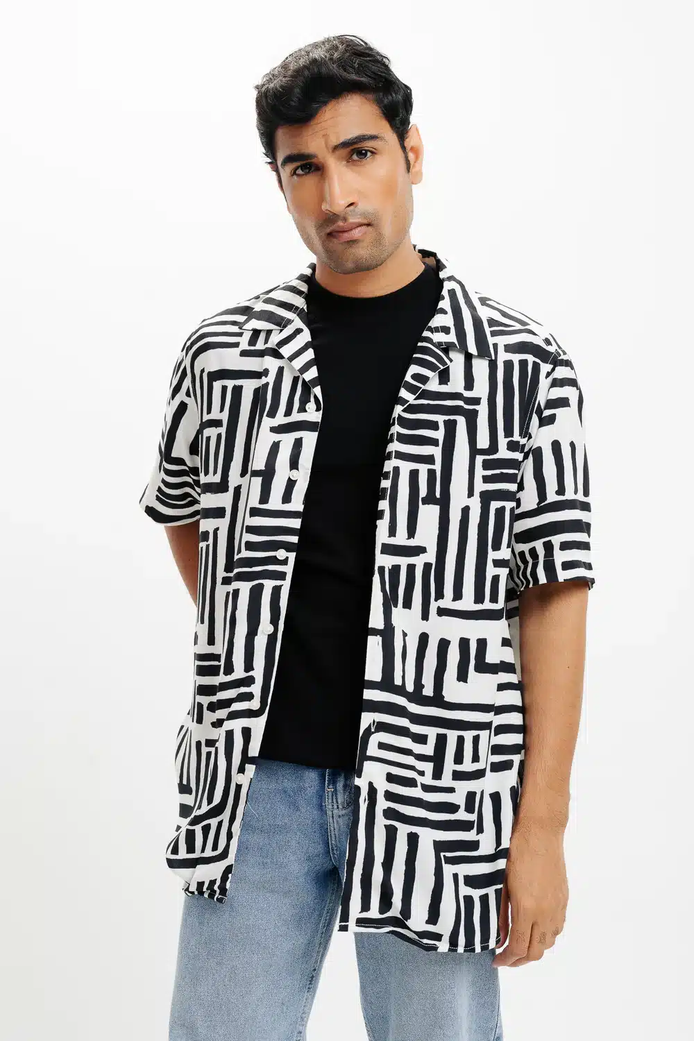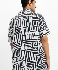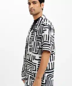 The shirt is tailored to a comfortable regular fit, ensuring it complements various body types while providing freedom of movement. Its short-sleeve design makes it suitable for casual outings, summer events, or simply hanging out with friends. The button-down collar adds a touch of formality, balancing out the shirt’s artistic design and making it versatile enough to pair with a variety of bottoms, from jeans to chinos or even casual trousers.